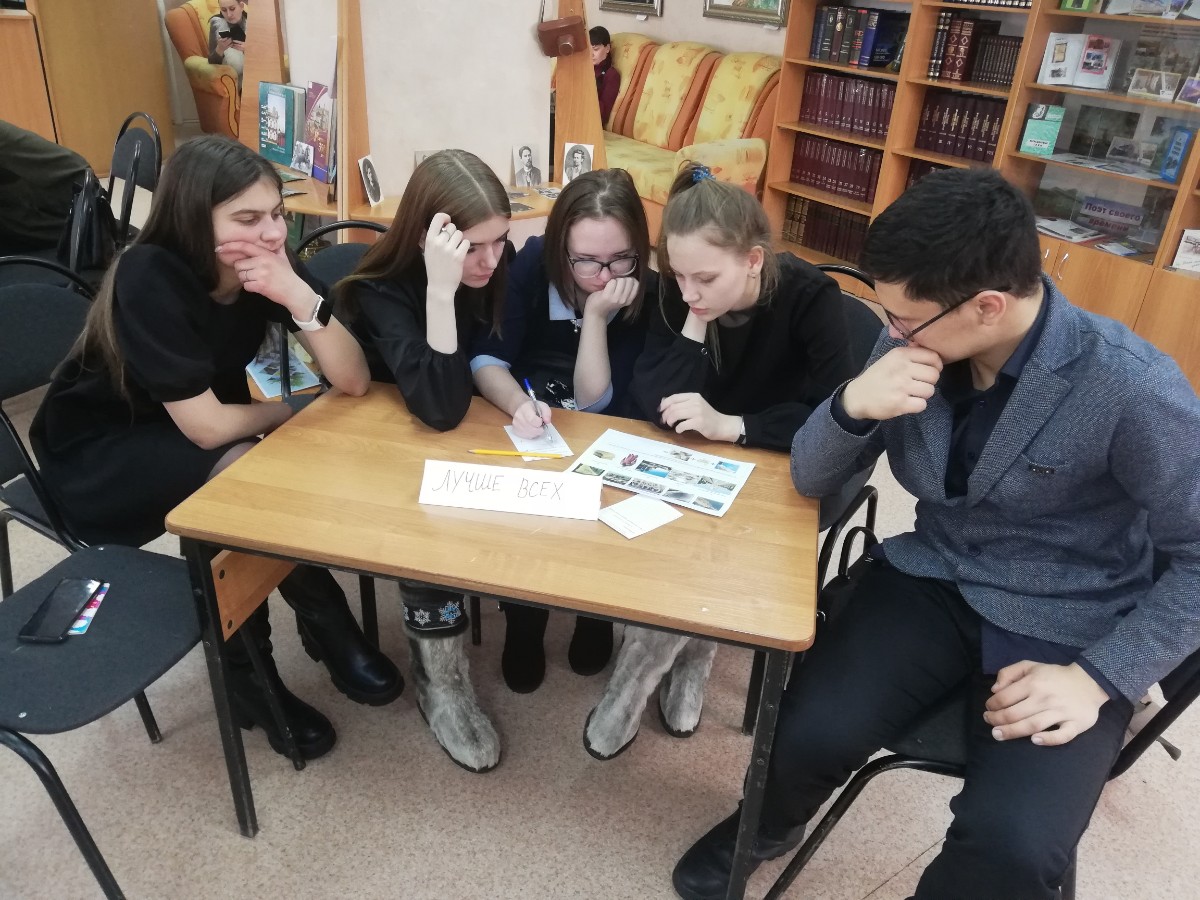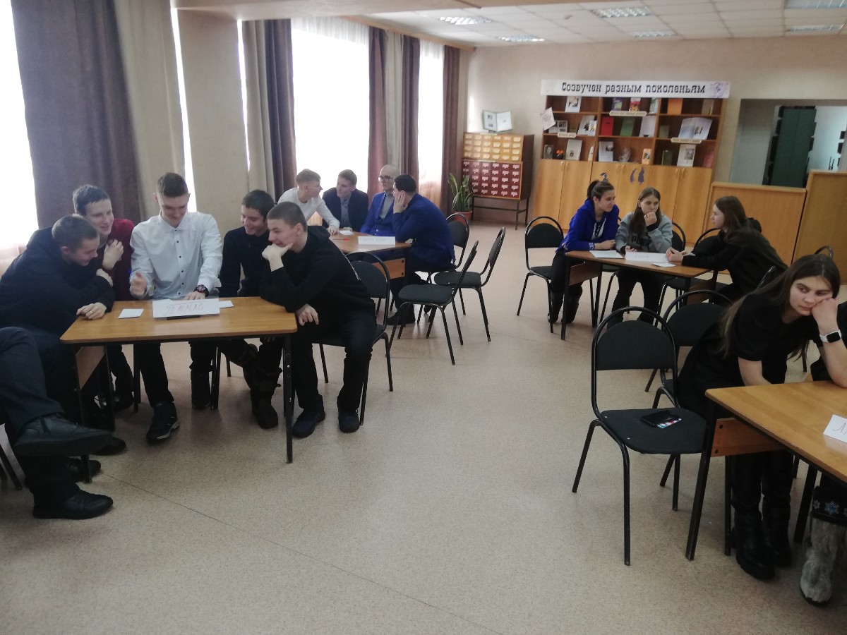 В Центральной библиотеке семейного чтения им. Н. Войновской 27 января состоялся интеллектуальный брейнсторминг «На веселую затею приглашаем грамотеев» среди учащихся 10-11 классов МБОУ «СОШ №1,7,8», студентов Зиминского железнодорожного техникума и Профессионального училища №39 п. Центральный Хазан. Четыре команды на протяжении пяти раундов: «Викторина - не забудь про логику», «Визуальный», «Блиц - опрос», «Вспомни название» и «Где логика? » боролись за звание «Лучший интеллектуал». Наибольший интерес у игроков вызвал раунд «Блиц - опрос», состоящий из шести тематических блоков, где команды устно по очереди отвечали на заданные вопросы. Победу одержала команда «Томас» Зиминского железнодорожного техникума, набрав 29 баллов.