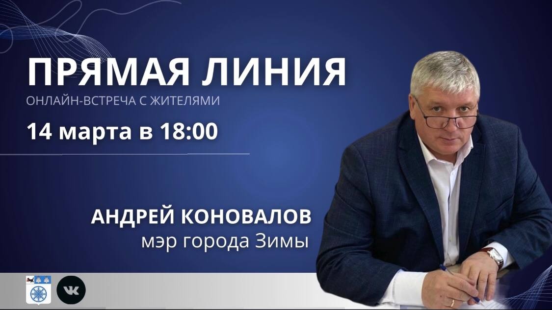 Уважаемые зиминцы! 14 марта в 18:00 ч. проведу прямую линию в социальной сети ВКонтакте. Обсудим перспективы развития города и отвечу на ваши вопросы.