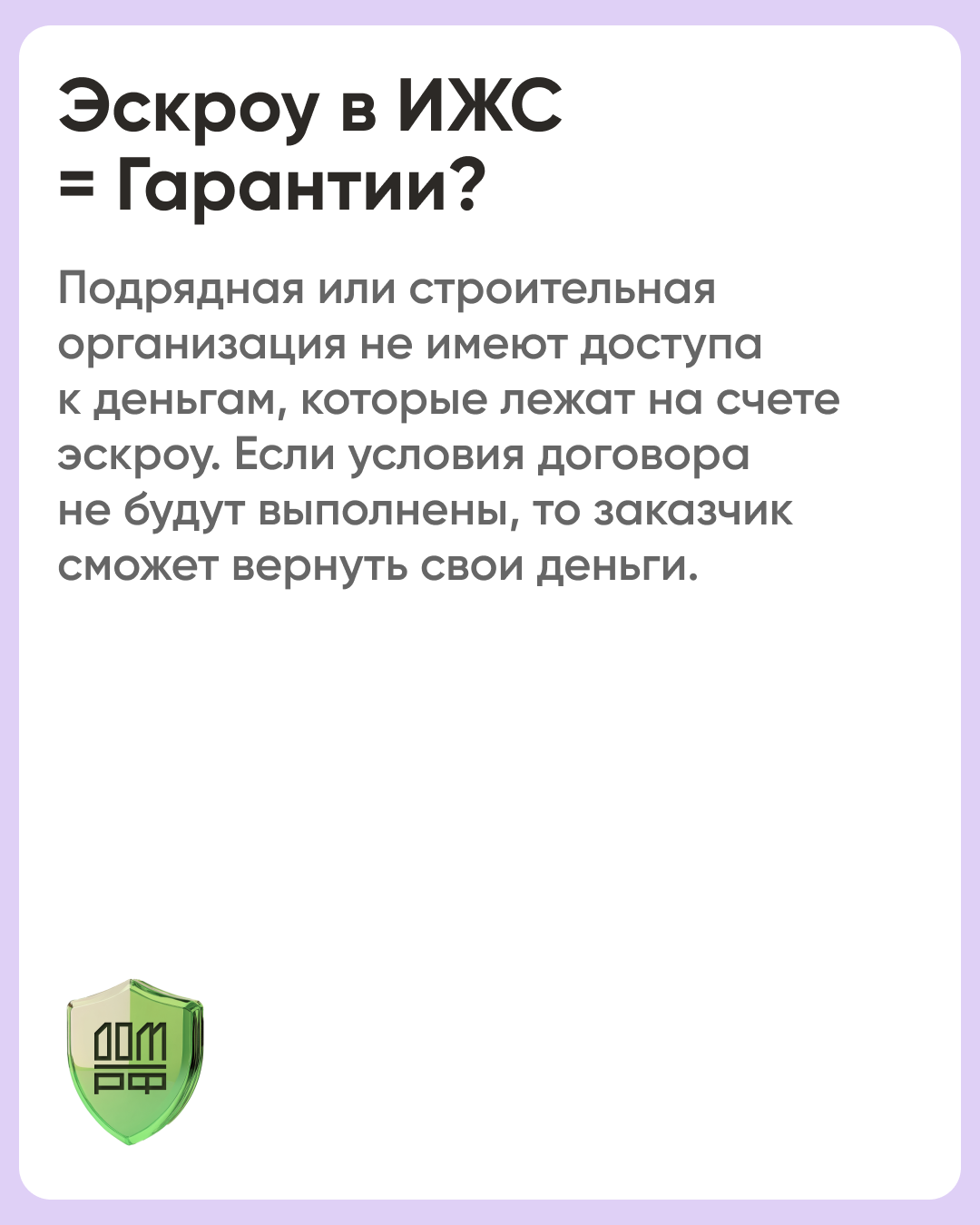 Эскроу-счет – это специальный банковский счет для безопасного проведения расчетов между покупателем и продавцом (заказчиков и подрядчиком). Получить деньги с такого счета подрядчик сможет только после завершения стройки и регистрации права собственности на жилой дом. Строительство объекта он ведет на собственные или заемные средства.