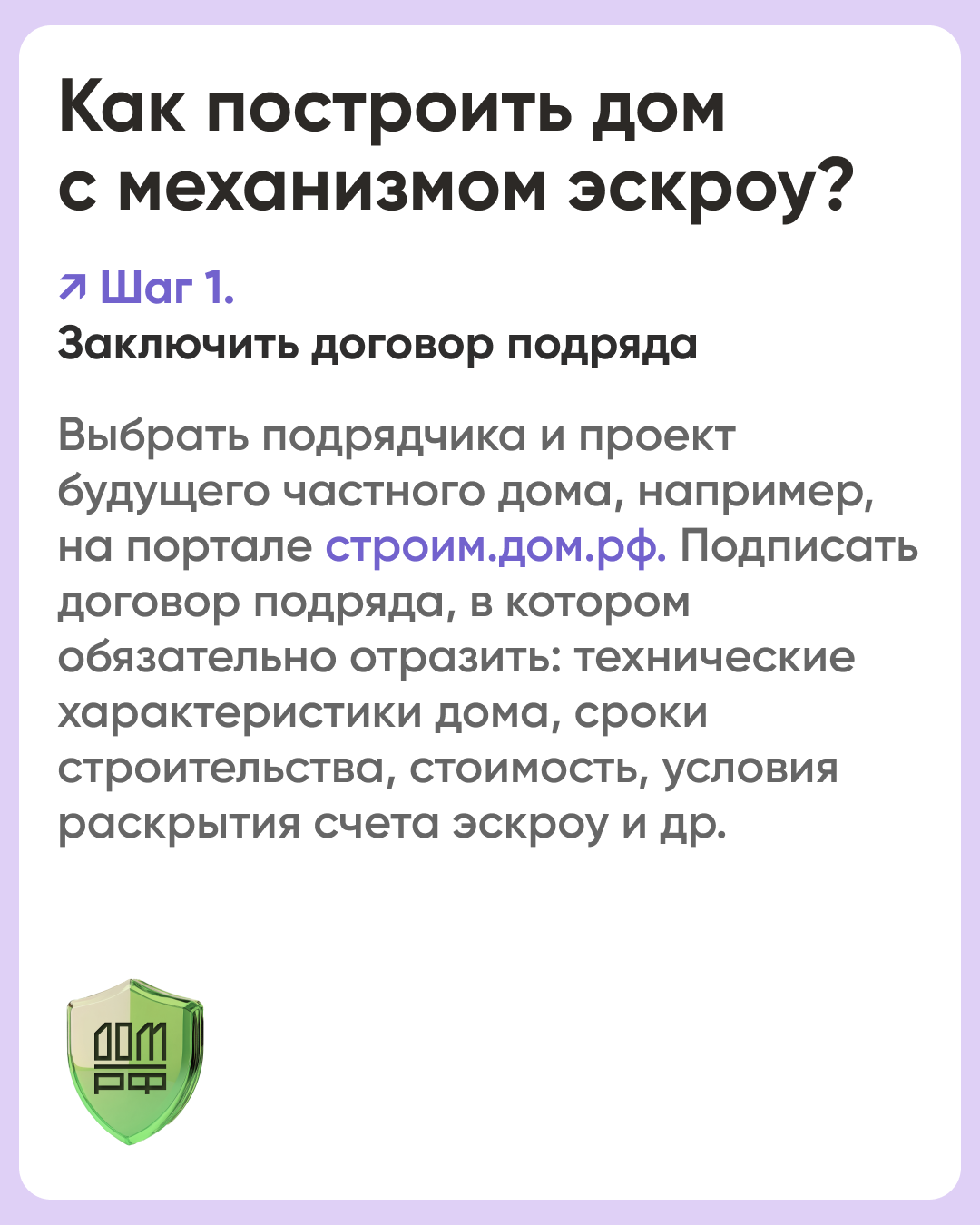 Цифровой базой для реализации механизма счетов эскроу в ИЖС выступит портал строим.дом.рф, где все участники строительства индивидуального жилого дома могут взаимодействовать в онлайн-формате. На платформе можно найти проекты индивидуальных жилых домов, строительство которых возможно с применением безопасного счета эскроу.