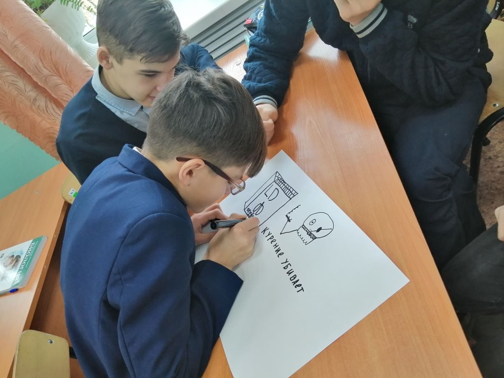 После всего услышанного учащиеся сделали вывод, что здоровье – неоценимое счастье в жизни человека, а курение наносит непоправимый вред организму и сокращает жизнь. В завершении мероприятия ребята изготовили антитабачные плакаты призывающие отказаться от вредной привычки.