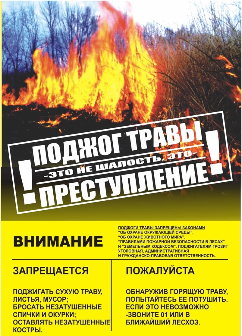 Под воздействием весеннего тепла повсеместно сходит снежный покров, обнажив высохшую прошлогоднюю траву. А это значит, что неосторожность с огнем в любой форме, будь то брошенный окурок или непотушенный полностью костер, представляет собой опасность.