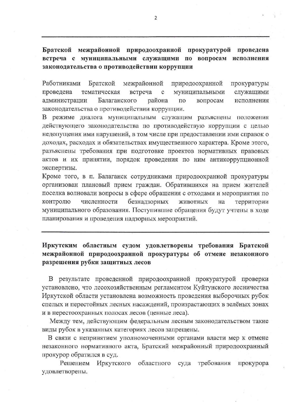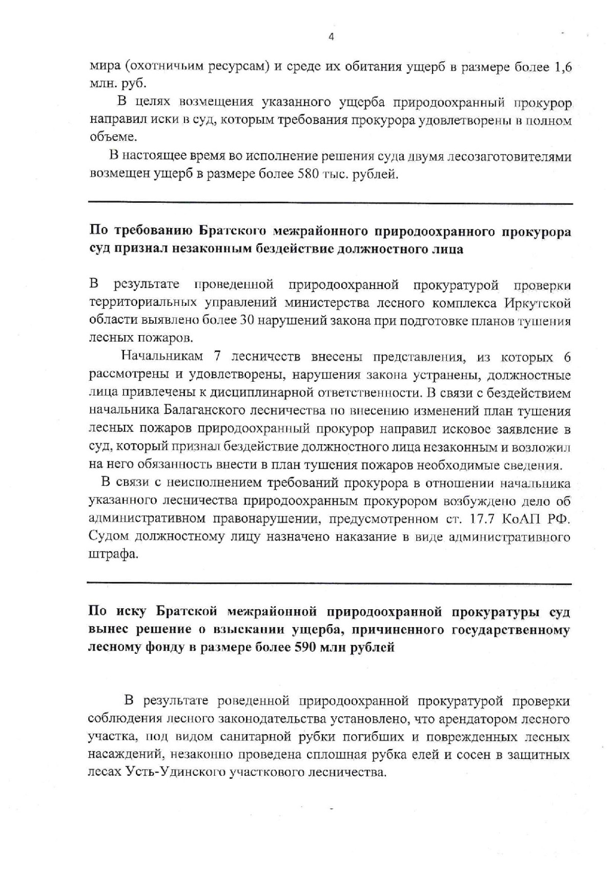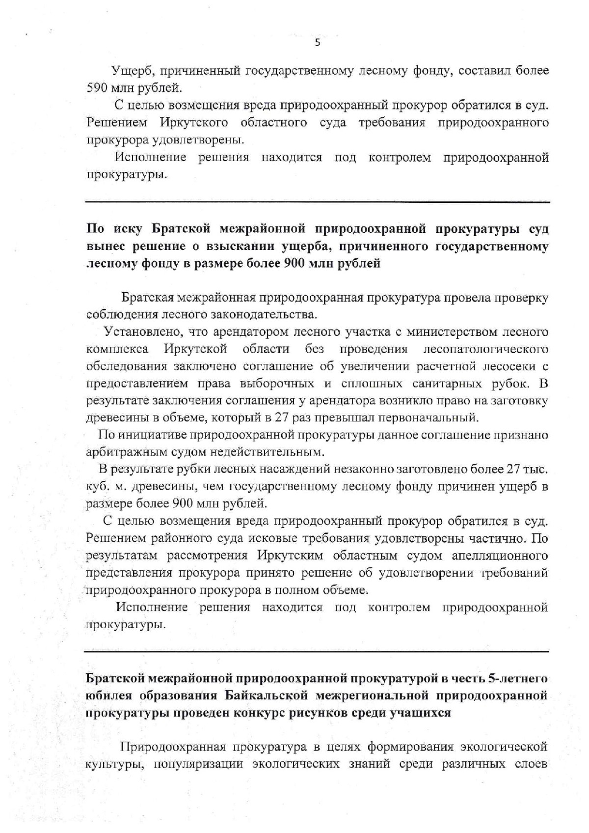 О деятельности Братской межрайонной природоохранной прокуратуры в 2022 году