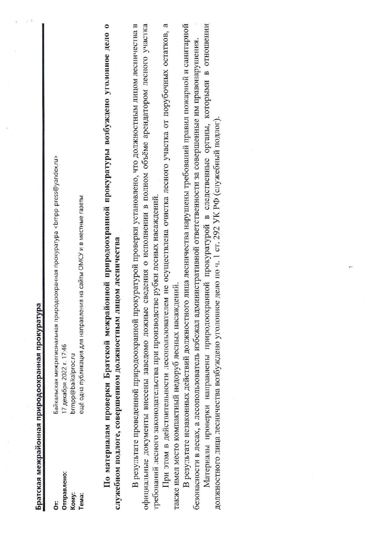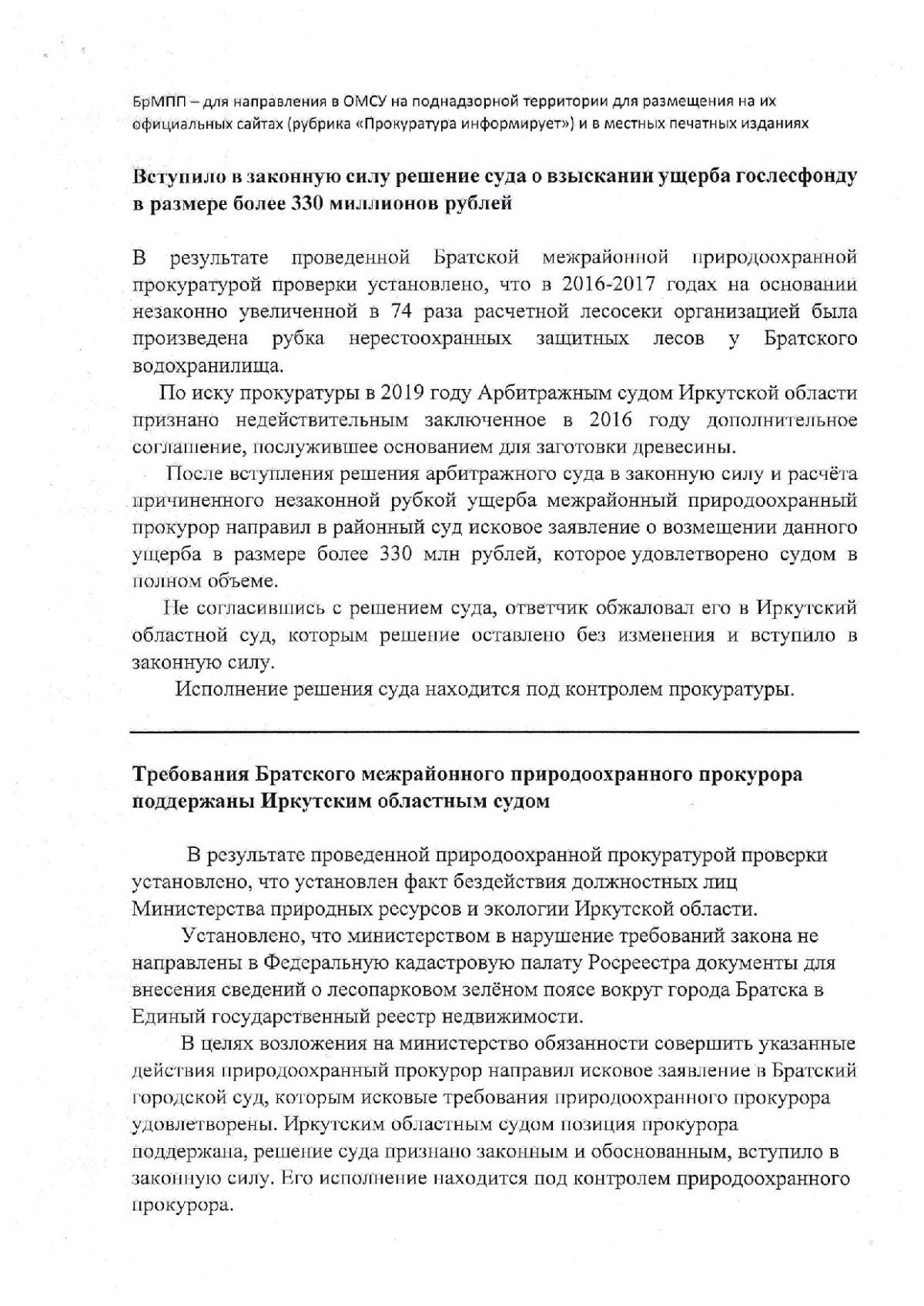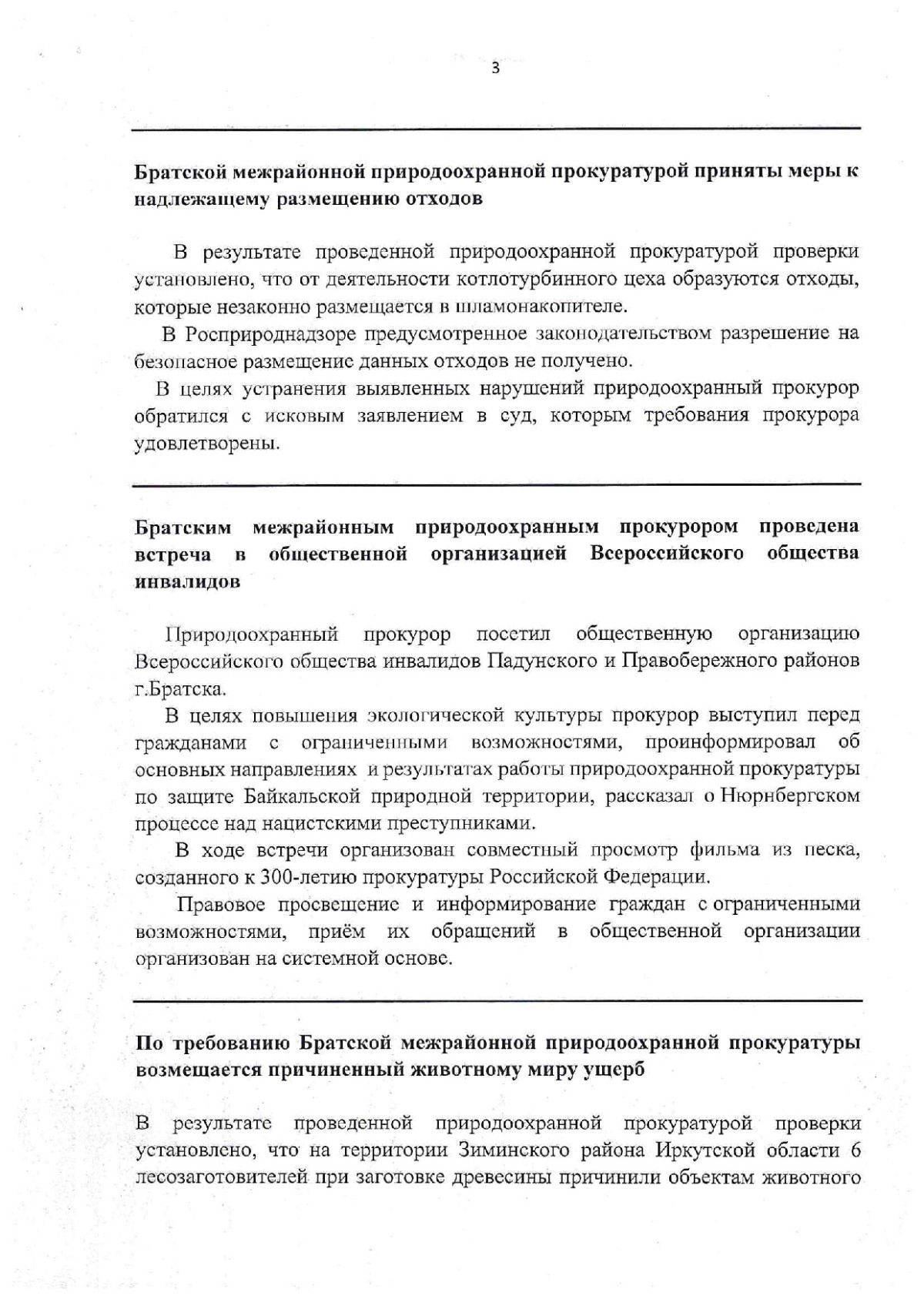О деятельности Братской межрайонной природоохранной прокуратуры в 2022 году