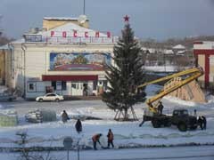 Появилась елка, привезли стройматериалы, и началось строительство горок. Этими работами на центральной площади занимаются представители УК «Восточная».