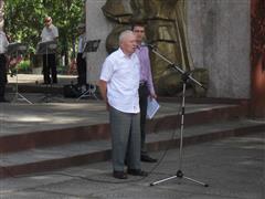 уководит которым Владимир Адельсон, началось мероприятие. Первым поприветствовал присутствующих Петр Пубчик, председатель совета ветеранов, и передал микрофон ветерану ВОВ Михаилу Николаевичу Сударикову. Для основной массы детей, участвующих в митинге, Великая Отечественная – это белое пятно, но благодаря рассказам ветерана, живого свидетеля той войны этот пробел начал восполняться. Михаил Николаевич подробно рассказал о начале войны, как было трудно сдерживать натиск врага советским солдатам и самое главное о том, как он сам участвовал в решающей для страны операции «Багртион».