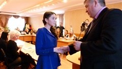 От имени молодёжи выступила Екатерина Копылова. Екатерина поблагодарила от лица стипендиатов за признание их успехов, отдельные слова благодарности прозвучали в адрес педагогов и родителей, людей, чья поддержка являлась самой главной на пути к победе.