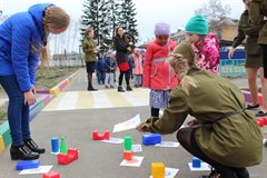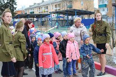В преддверии 73 годовщины Победы в Великой Отечественной войне в МБДОУ «Детский сад №14» добровольцами «Молодежный союз» был проведен музыкально-спортивный праздник «Мы наследники победы». Строевым шагом, выполняя команды, добровольцы зашли на территорию садика. После доклада командира, участники поприветствовали друг друга троекратным «Ура». Воспитанников детского сада ждали спортивные эстафеты, так девочки смогли попробовать себя в качестве медсестр, а мальчики - водителей. Команды переправлялись по тропе, переносили снаряды, собирали солдатский рюкзак. После спортивной части, ребят ждал танце
