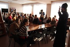 В ходе заседания к добровольцам присоединился настоятель кафедрального храма Благовещения Пресвятой Богородицы г.Саянска иерей Иван Борисюк, который провел с ребятами беседу о православном добровольчестве. Он рассказал об адресной помощи пожилым людям, о созданном пункте по сбору вещей для малоимущих граждан и работе творческого коллектива "Жемчужина". Отец Иоанн особое внимание уделил духовным ценностям молодежи. В неформальной обстановке ответил на вопросы ребят и пригласил к дальнейшему сотрудничеству.