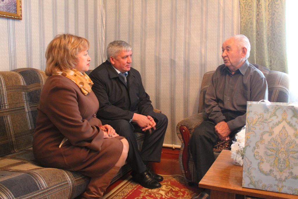 Сегодня в гости к юбиляру также приехали мэр города А.Н. Коновалов и директор ОГКУ "УСЗН по г. Зиме и Зиминскому району" Н.А. Макова, чтобы поздравить ветерана и вручить цветы и памятные подарки.