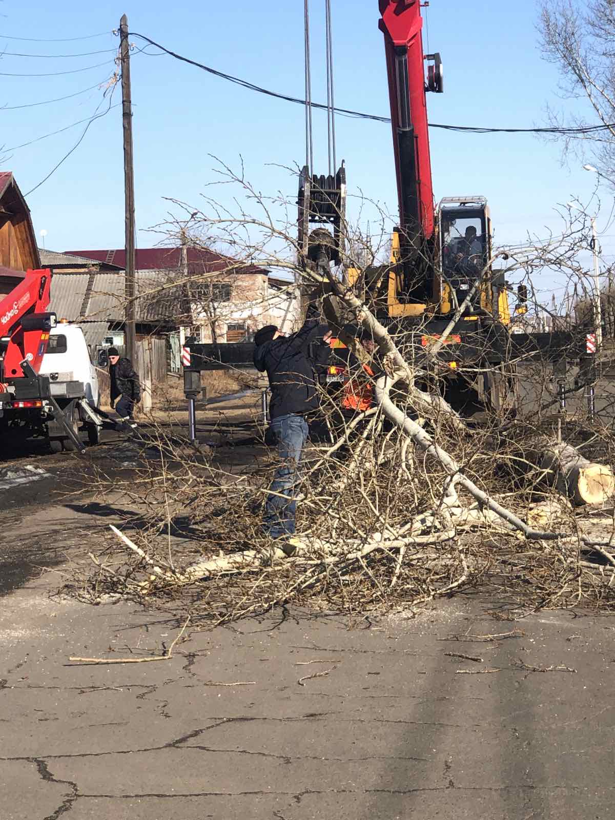 Сегодня первые в этом году работы по кронированию деревьев проходили на улице Клименко.