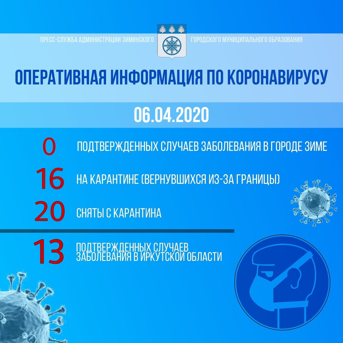 Оперативная информация по коронавирусу в городе Зиме на 06.04.2020