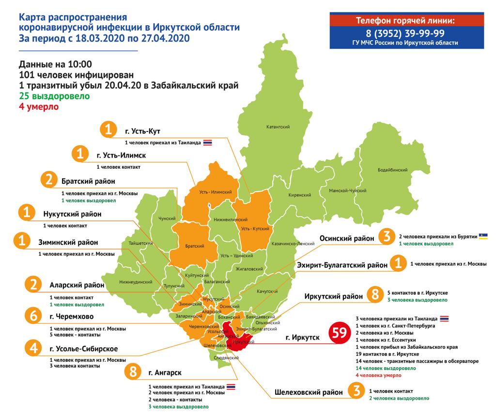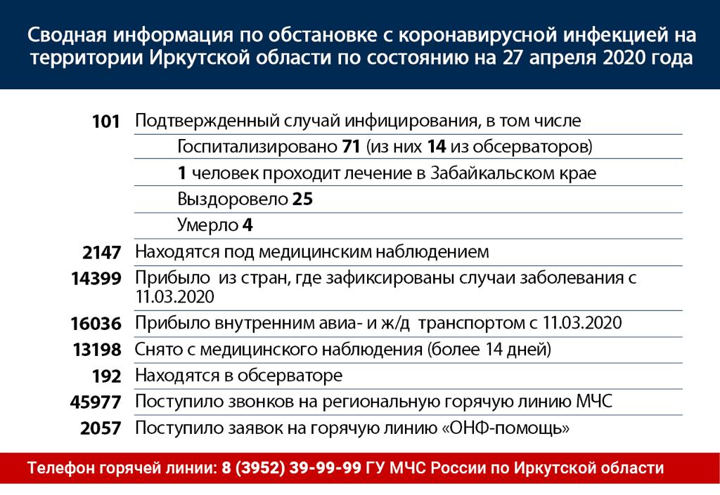 Сводная информация по обстановке с коронавирусной инфекцией на территории Иркутской области 27.04.2020