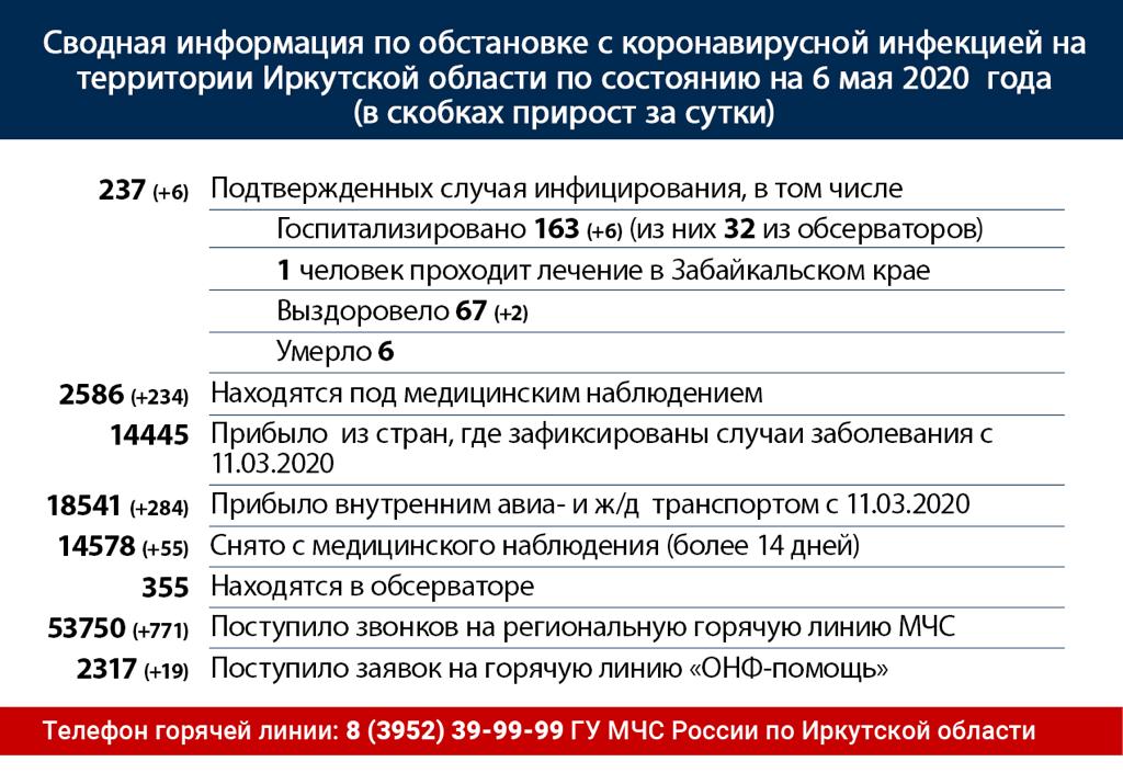 Сводная информация по обстановке с коронавирусной инфекцией на территории Иркутской области 06.05.2020