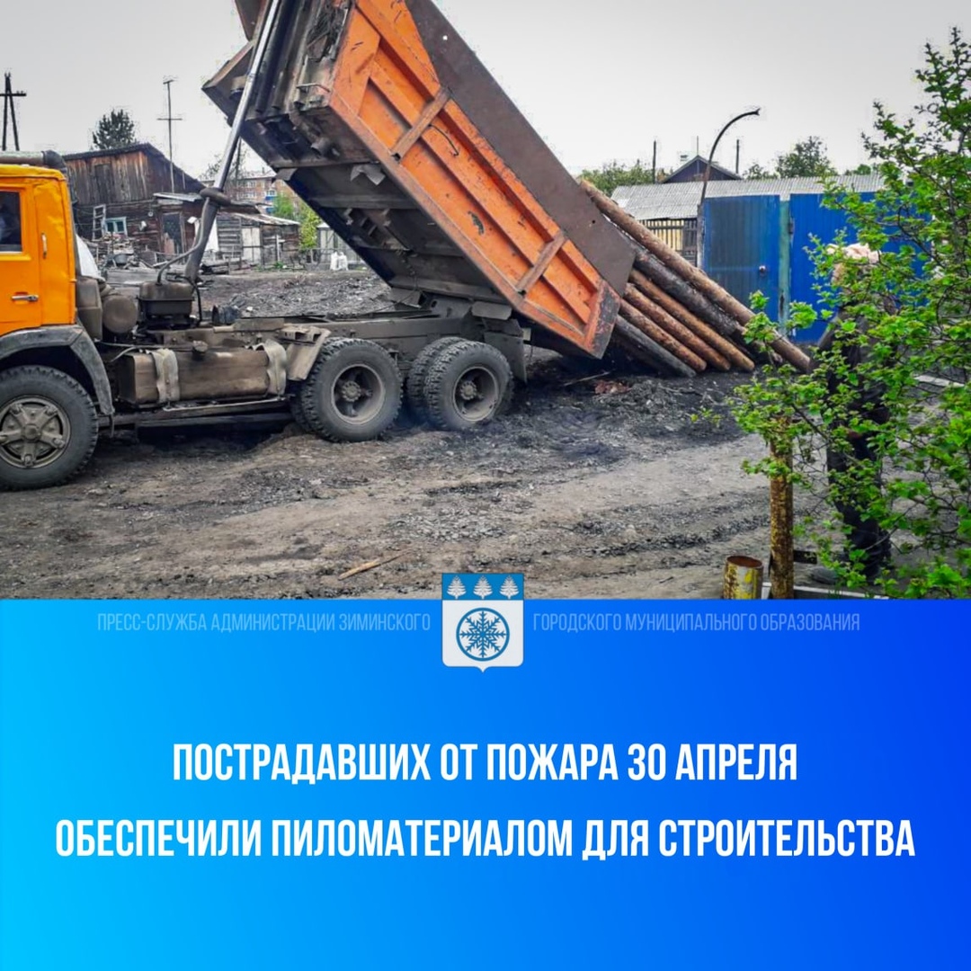 Как сообщалось ранее, администрацией города совместно с Правительством Иркутской области прорабатывался вопрос об обеспечении древесиной для строительства зиминцев, пострадавших при пожаре 30 апреля. 80 кубов пиломатериала уже доставлены в город и распределены между жителями в соответствии с занимаемой ими площадью.