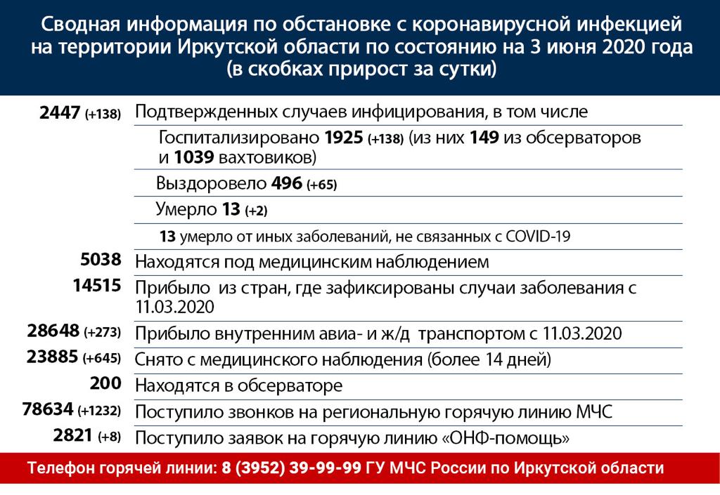 Сводная информация по обстановке с коронавирусной инфекцией на территории Иркутской области 03.06.2020
