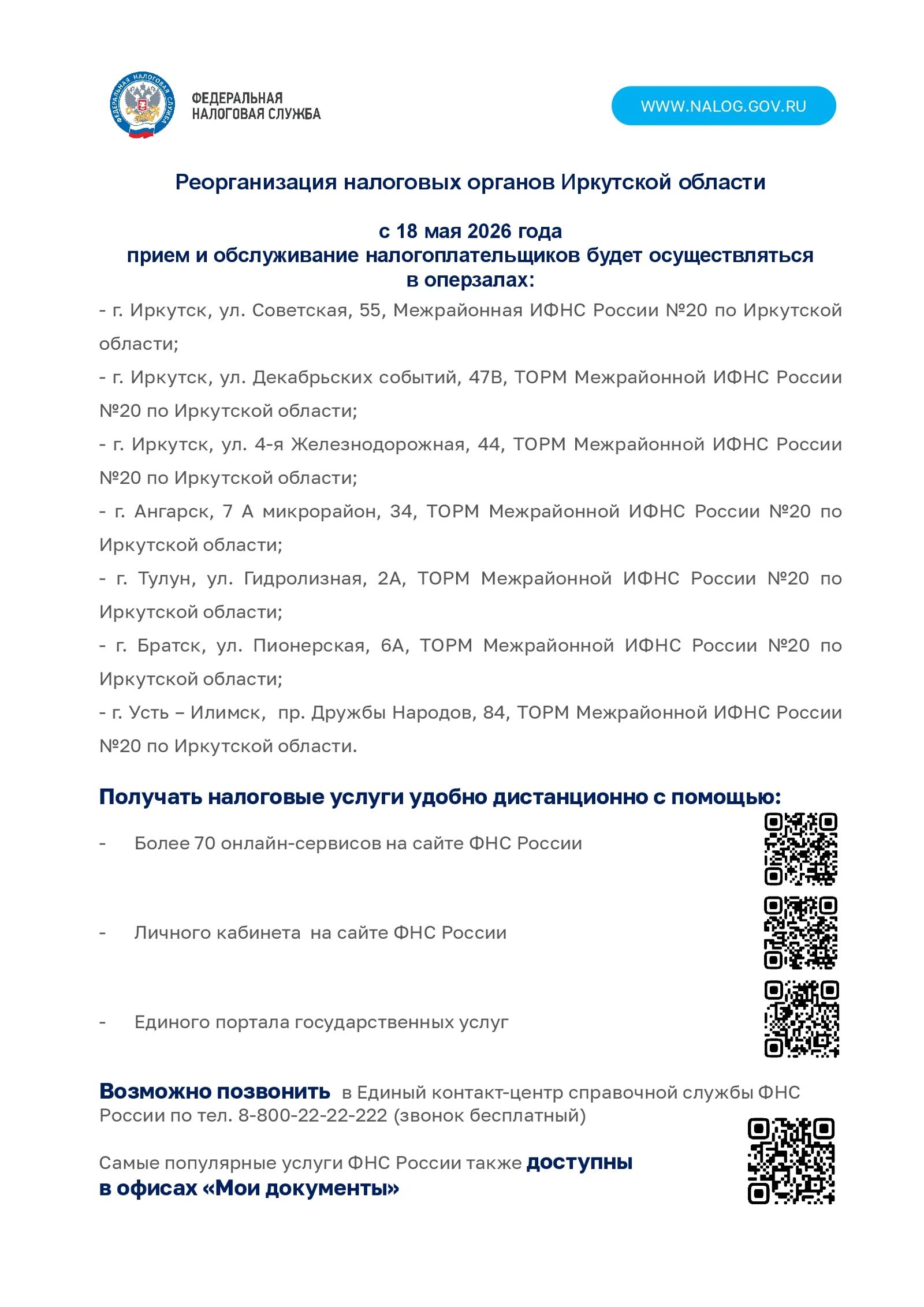 В мае 2026 года в Иркутской области пройдет реорганизация налоговых органов