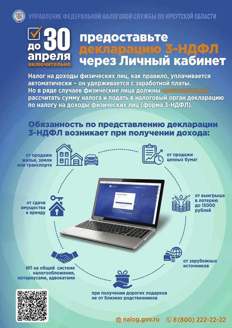 Предоставте декларацию 3-НДФЛ через Личный кабинет до 30 апреля включительно