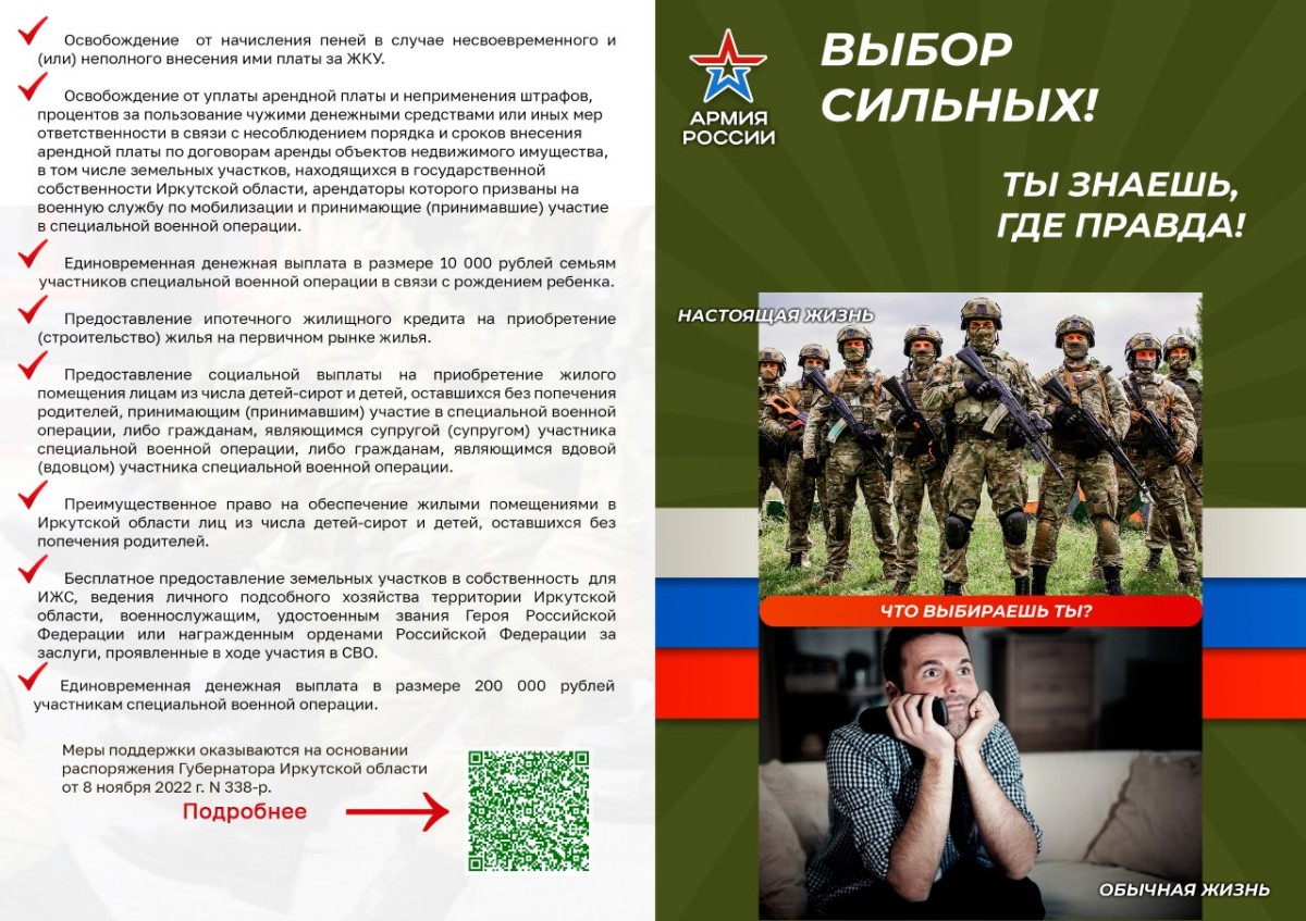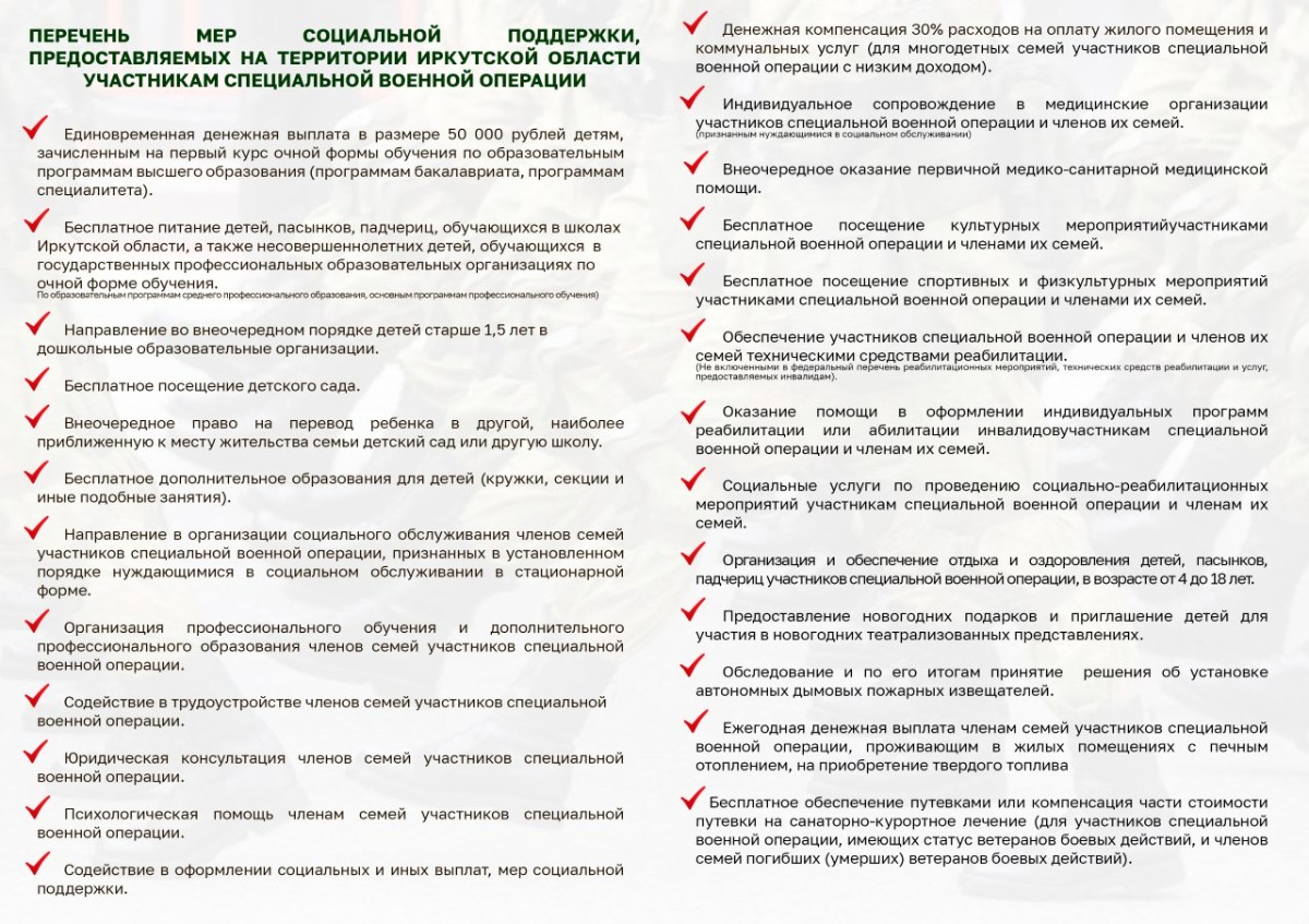 Памятка. МЕРЫ СОЦИАЛЬНОЙ ПОДДЕРЖКИ ВОЕННОСЛУЖАЩИМ И ЧЛЕНАМ ИХ СЕМЕЙ на территории ИРКУТСКОЙ ОБЛАСТИ