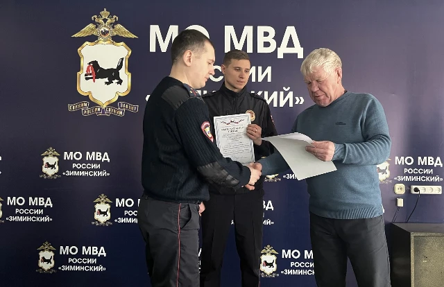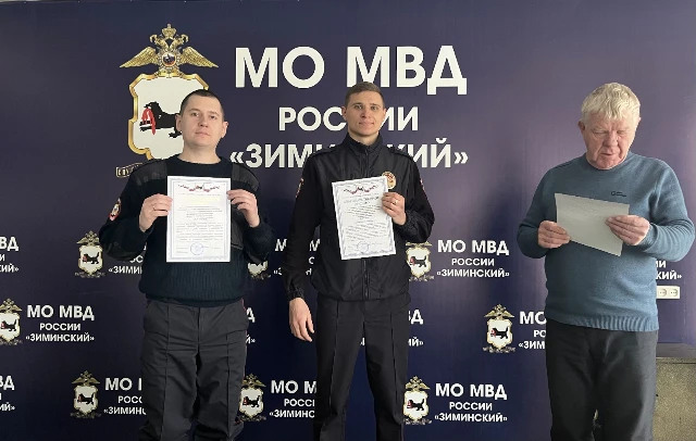 На утреннем рапорте личного состава Межмуниципального отдела МВД России «Зиминский» представитель службы ветеринарии вручил благодарственные письма за сотрудничество, оказание помощи и проведение рейдовых мероприятий по профилактике правонарушений в сфере обращения с животными начальнику отдела полковнику полиции Алексею Филимонову, заместителю начальника по ООП Юрию Нагайцеву, заместителю начальника - начальнику отделения УУП Виктору Назарову и участковым уполномоченным Александру Тарасюк, Семену Беляеву, Денису Петухову.