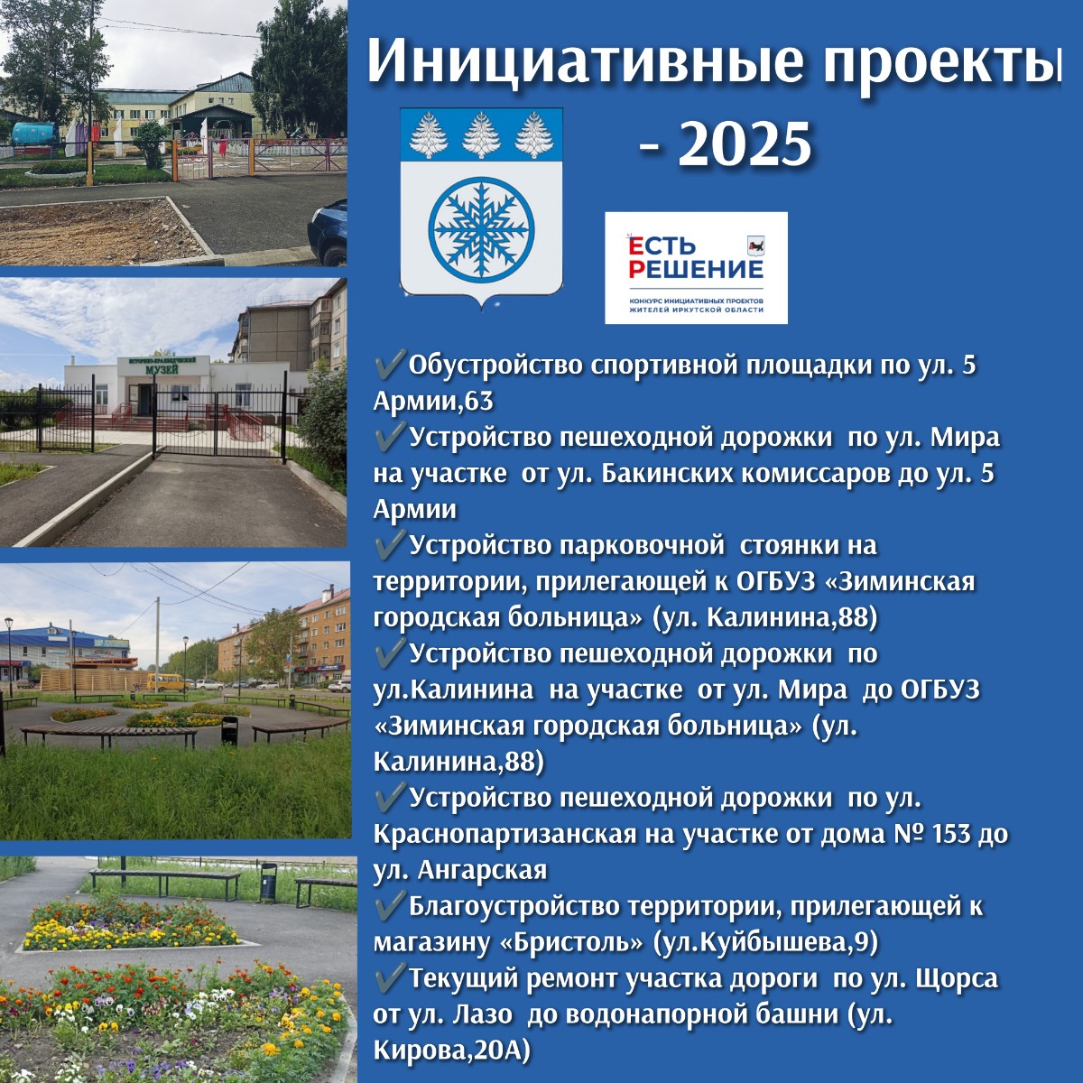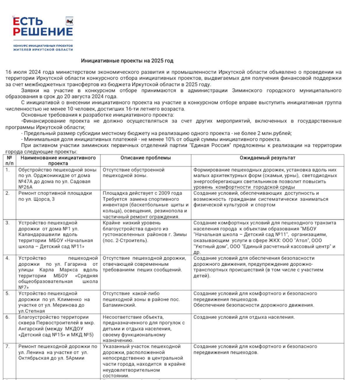 При активном участии зиминских первичных отделений партии "Единая Россия"предложены к реализации на территории города следующие проекты: