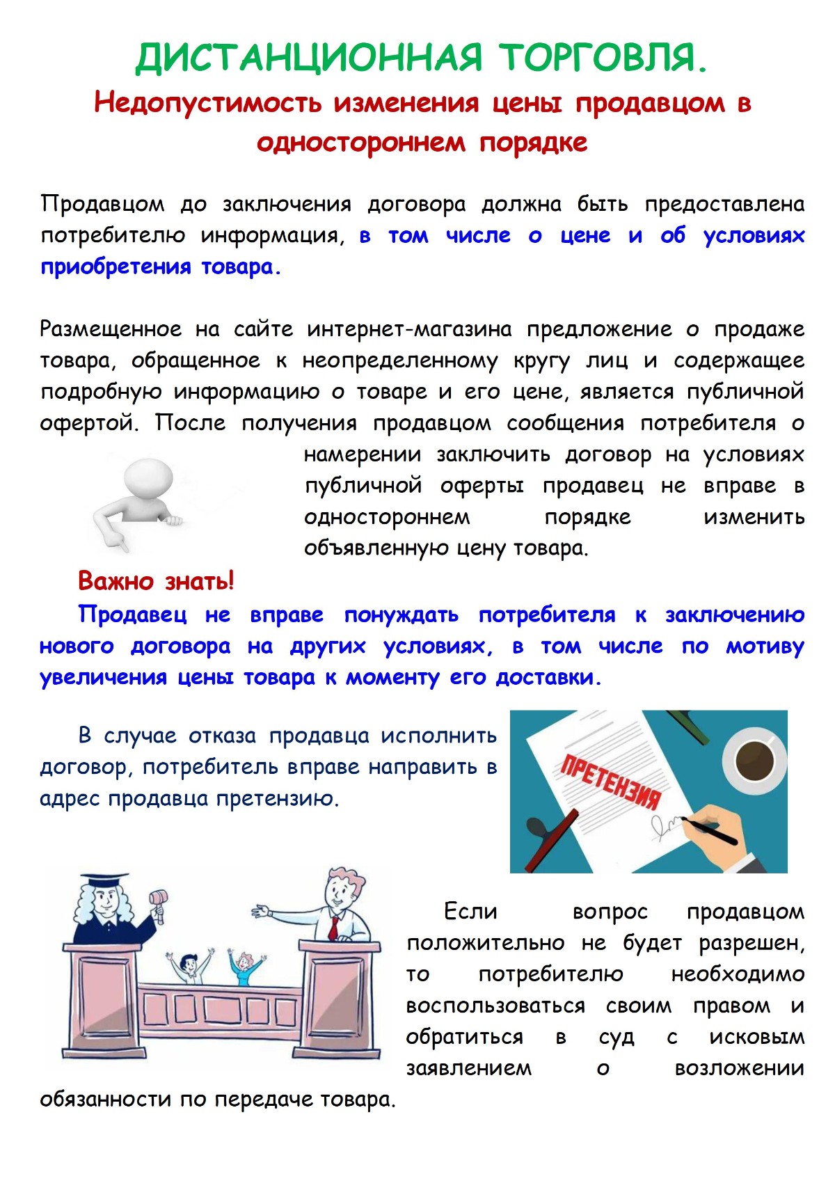 Дистанционная продажа. Недопустимость изменения цены продавцом в одностороннем порядке