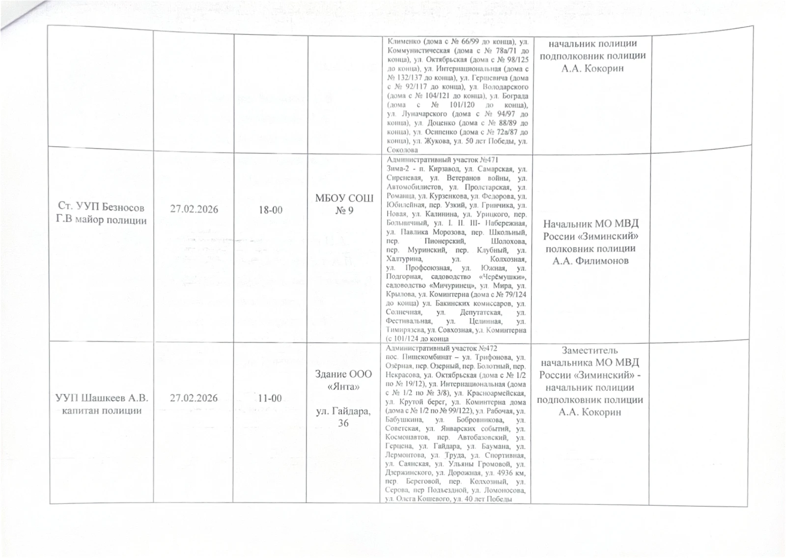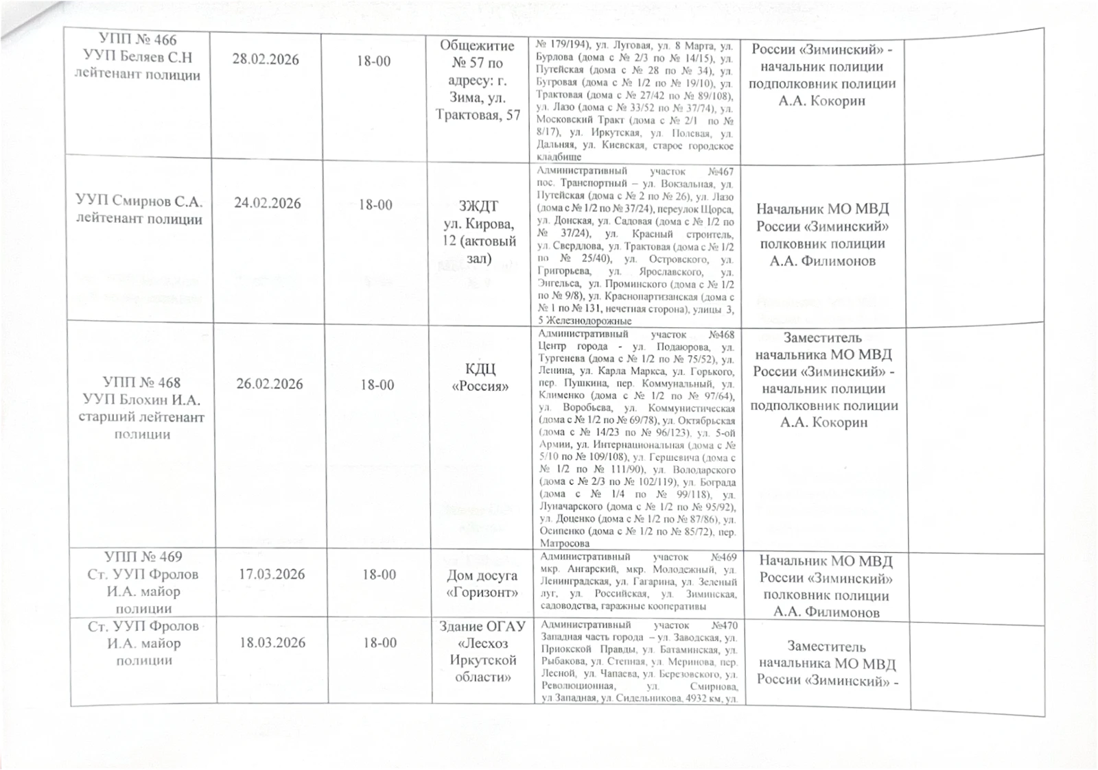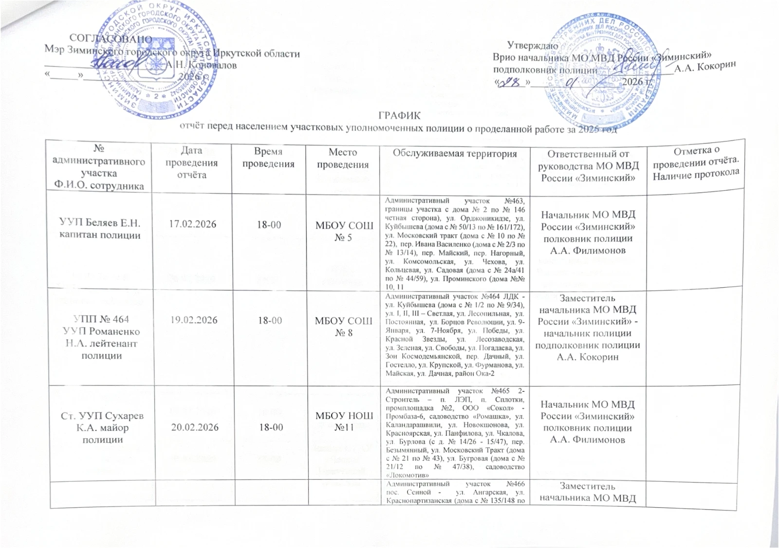 График отчётов перед населением участковых уполномоченных полиции о проделанной работе за 2026 год