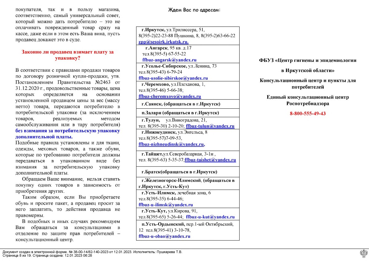 Территориальный отдел Управления Роспотребнадзора по Иркутской области в г. Зиме и Зиминском районе