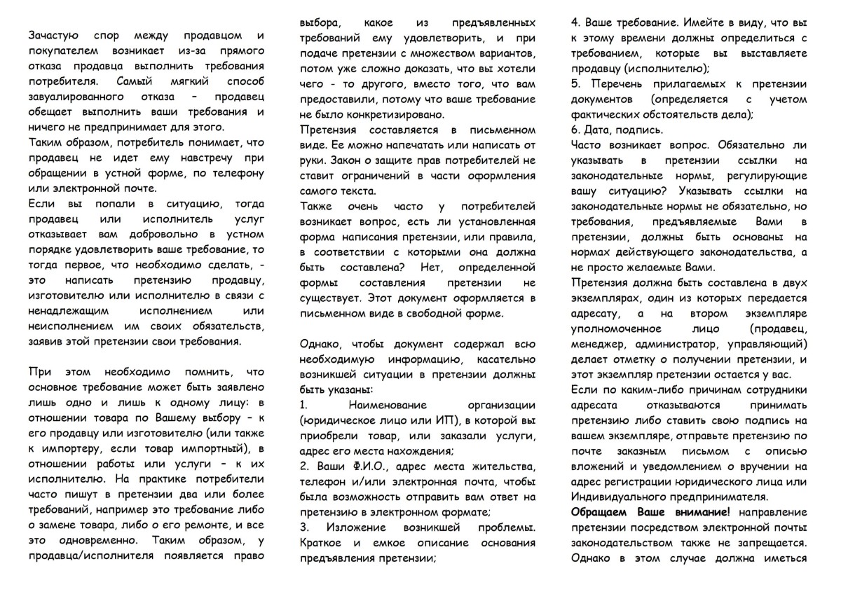 Памятка. Права потребителя при нарушении сроков выполнения работ