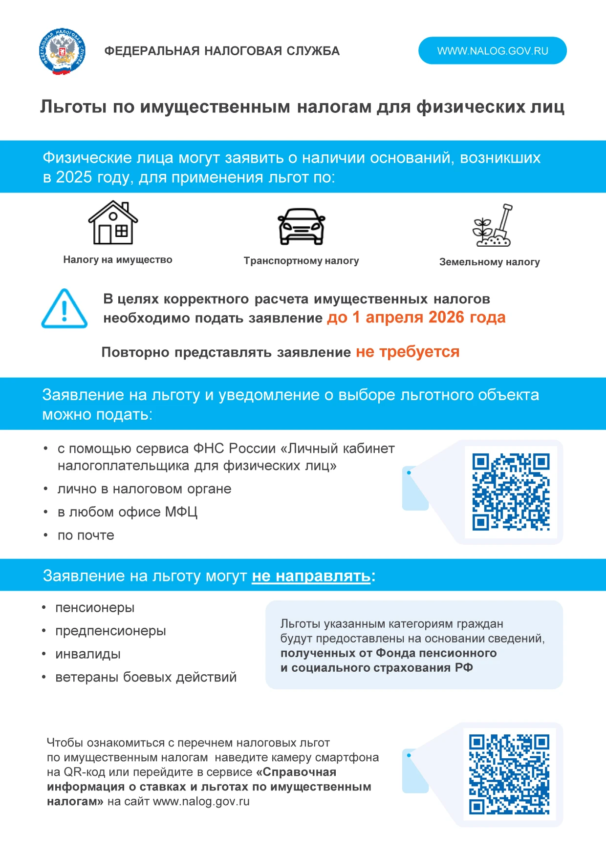Для отдельных категорий граждан предусмотрен беззаявительный порядок получения налоговых льгот