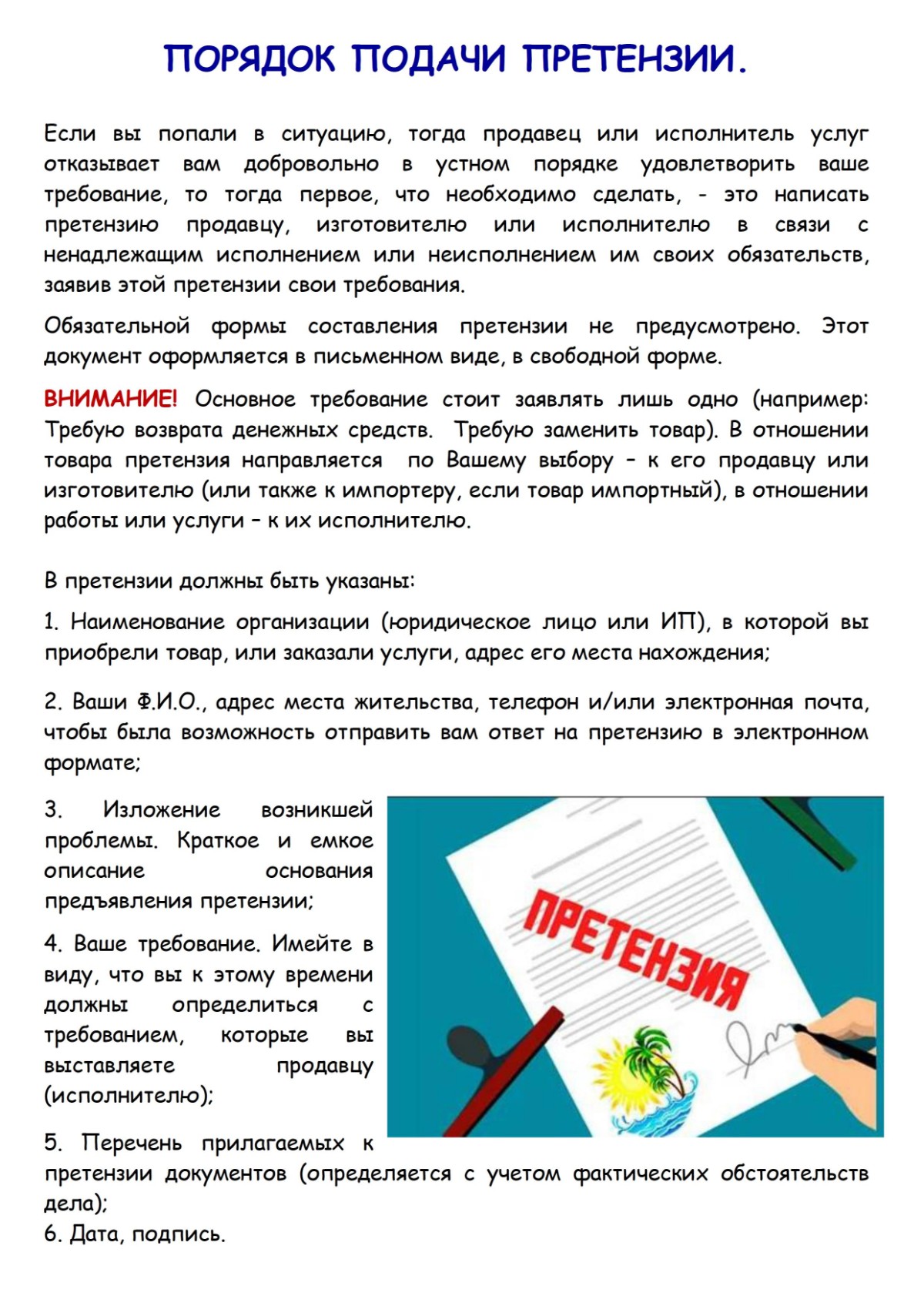 Памятка. Права потребителя при нарушении сроков выполнения работ