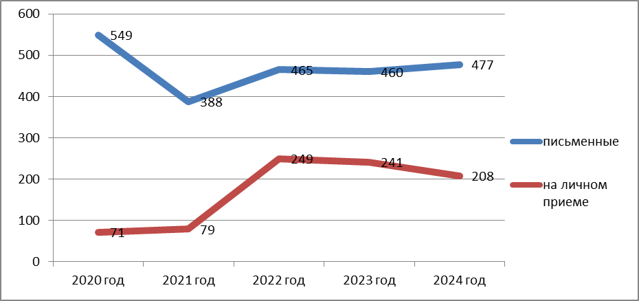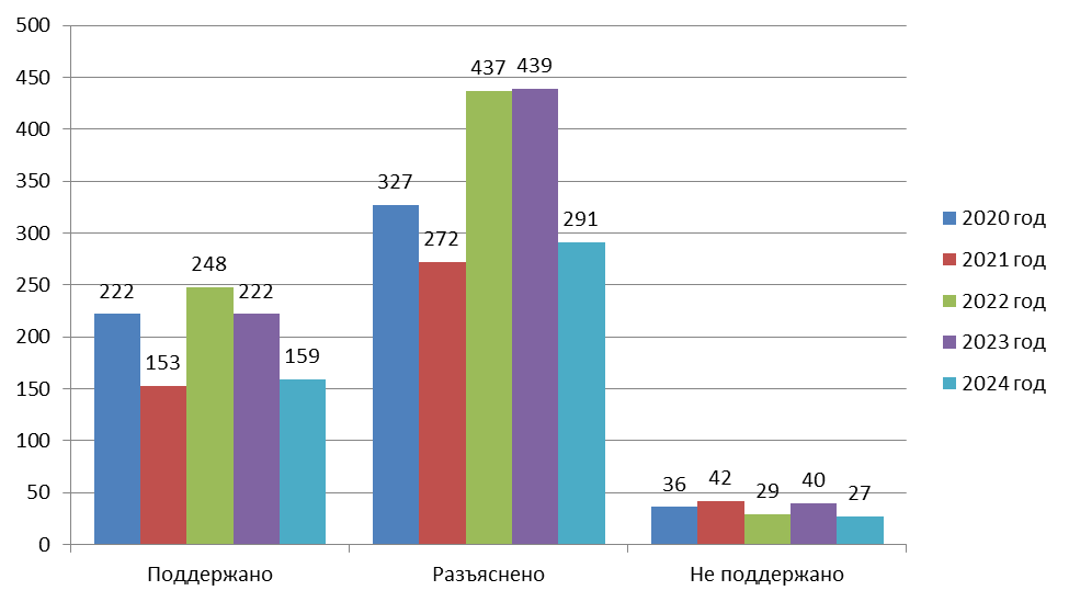 Итоги рассмотрения обращений | 2020 г., чел.(%) | 2021 г., чел.(%) | 2022 г., чел.(%) | 2023 г., чел.(%) | 2024 г., чел.(%) | |