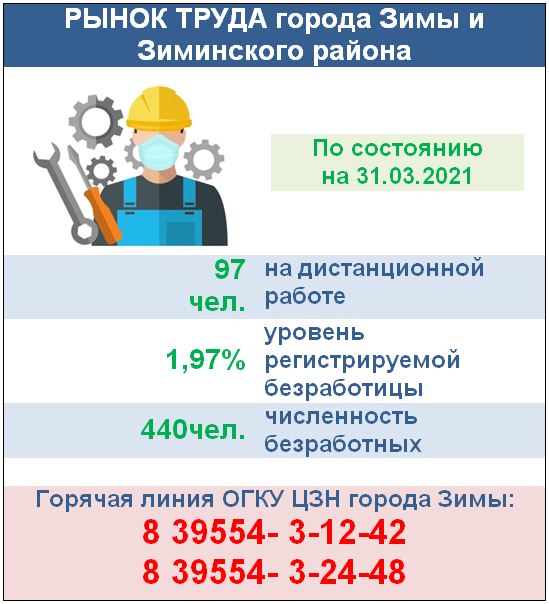Рынок труда города Зимы и Зиминского района на 31 марта 2021 год