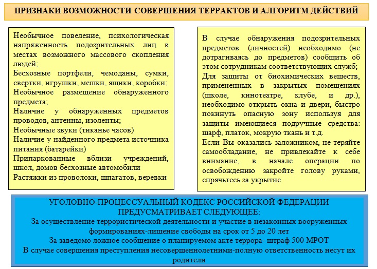 ТЕРРОРИЗМ- это действия, которые создают опасность гибели людей, причинение значительного материального ущерба, либо наступление общественно опасных последствий, если эти действия направлены на нарушение общественной безопасности, устрашение населения, либо оказание воздействия на принятие решения органами власти, а также угроза совершения таких действий