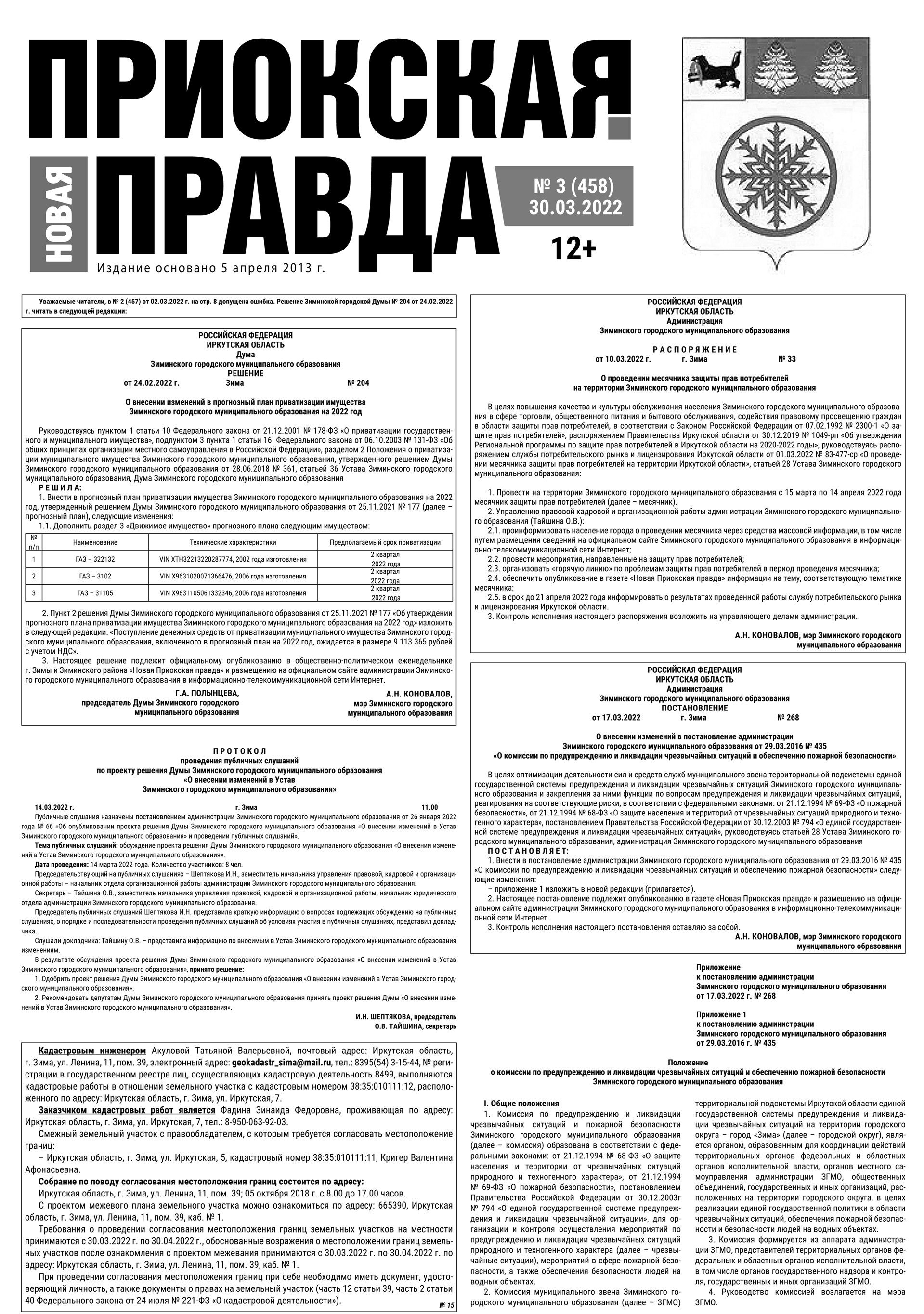 № 3 (458) от 30 марта 2022 г.