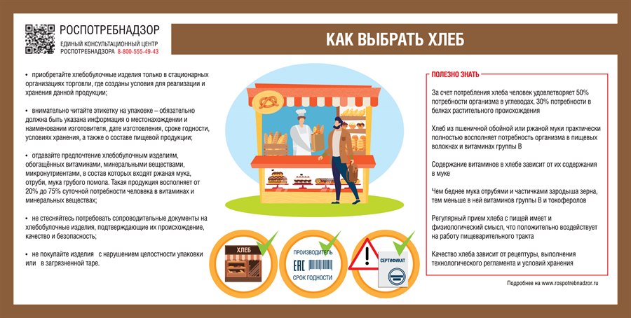 приобретайте хлебобулочные изделия только в стационарных организациях торговли, где созданы условия для реализации и хранения данной продукции;