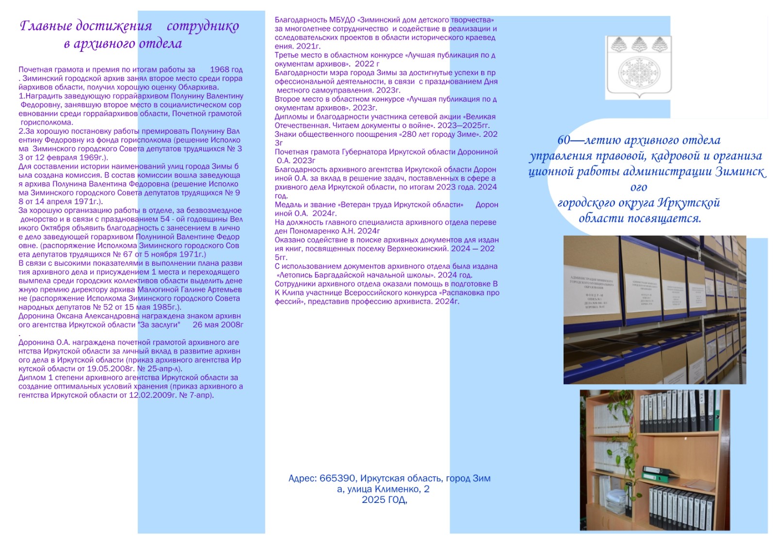 - распоряжение администрации Зиминского городского муниципального образования "Об утверждении плана работы архивного отдела управления правовой, кадровой и организационной работы на 2025 год".