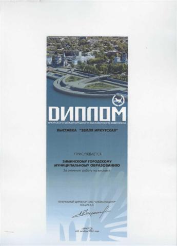 Диплом за активную работу на выставке Земля Иркутская 2004 год