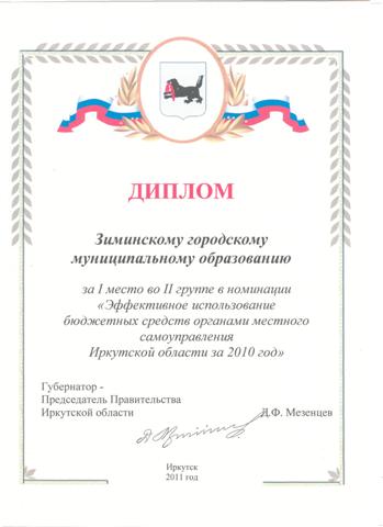 Эффективное использование бюджетных средств органами местного самоуправления Иркутской области за 2010 год