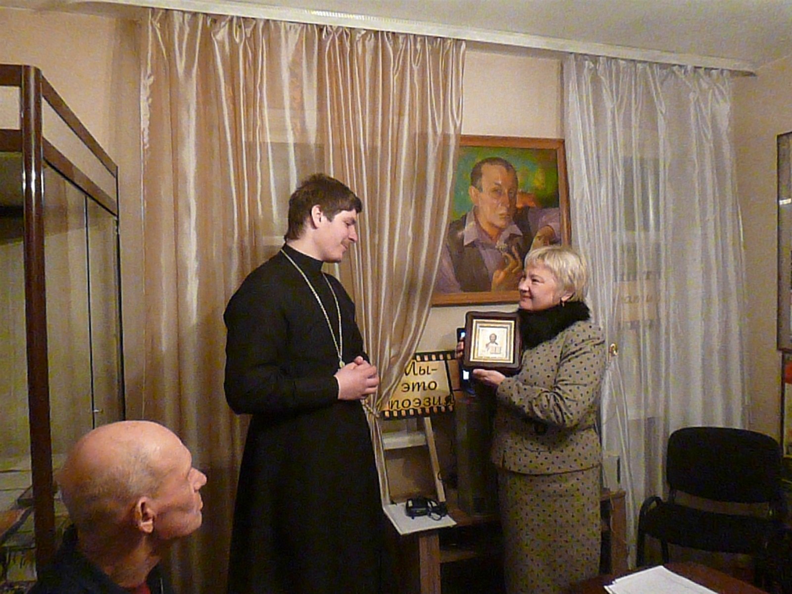 24 января в Доме-музее поэзии состоялся отборочный этап православного фестиваля в честь иконы Божией Матери, именуемой "Одигитрия". На встрече присутствовали участники клуба по интересам "Звучащее слово" – чтецы из школ №№ 5, 26. Гость мероприятия – отец Николай – рассказал ребятам об истории этой иконы. Дети читали стихи на духовно-философскую, а также на гражданско-патриотическую тематику. Победители отборочного тура будут представлять Дом-музей поэзии на финальном этапе, который состоится 29 января в Железнодорожном техникуме.