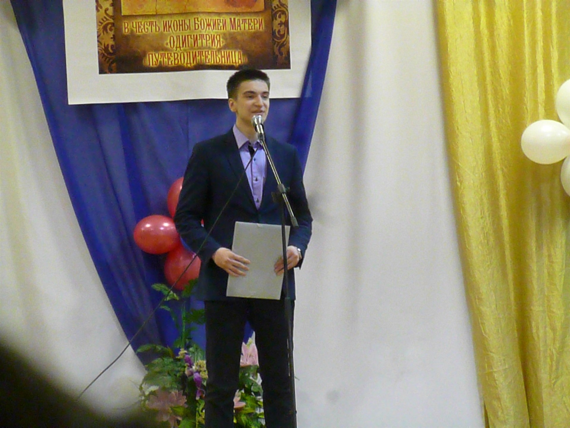 29 января воспитанники клуба по интересам "Звучащее слово" приняли участие в православном фестивале "Одигитрия", который прошёл в актовом зале Зиминского железнодорожного техникума.. С приветственными словами к участникам фестиваля обратились руководитель отдела по делам молодёжи Саянской епархии иерей Александр Муляр и иерей Свято-Никольского храма г. Зима Николай Захожий.