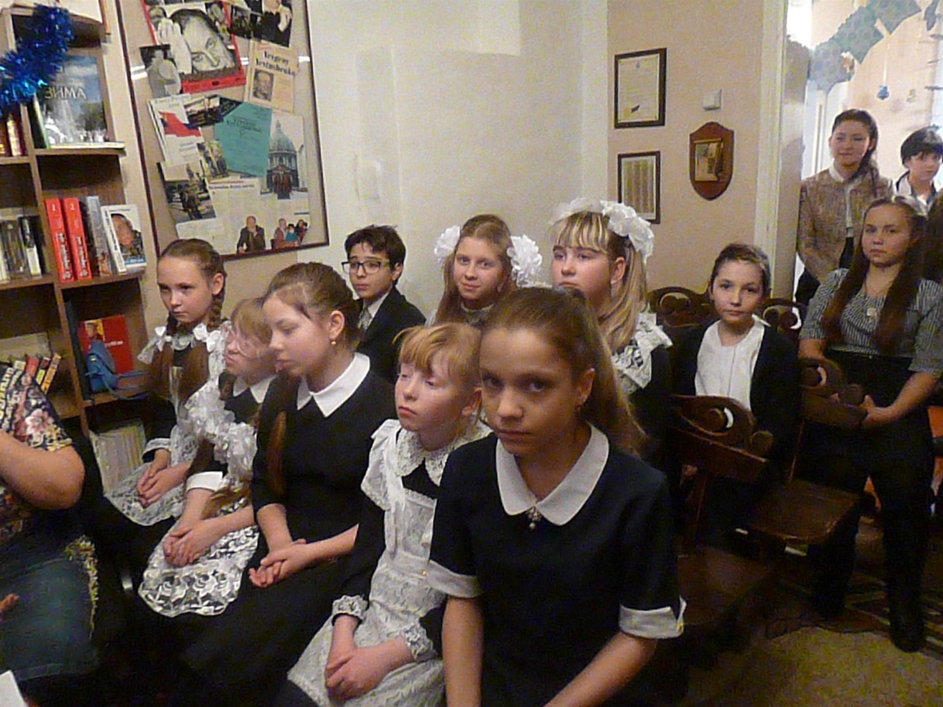 К зимним праздникам был приурочен проводимый Домом-музеем конкурс чтецов «В гостях у Зимушки – зимы», в котором приняли участие учащиеся 1-7-х классов школ города №№ 1,5, 8, 9, 10, 26 и воспитанники клуба «Романтик». Для выступления ребятам предлагались следующие номинации: «Люблю я зимние деньки! » (стихотворения, посвящённые зимним праздникам), «Хороша русская природа зимой» (стихотворения, посвящённые зимней природе). Следует отметить, что номинация, посвящённая красоте зимней природы, оказалась наиболее популярной среди юных чтецов.