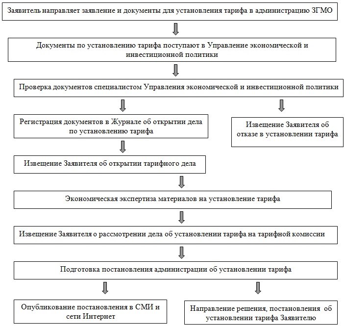 2.3.2. Процедура предоставления муниципальной услуги завершается направлением в адрес заявителя постановления администрации ЗГМО об установлении тарифов, решения тарифной комиссии, либо уведомления об отказе в установлении тарифов.