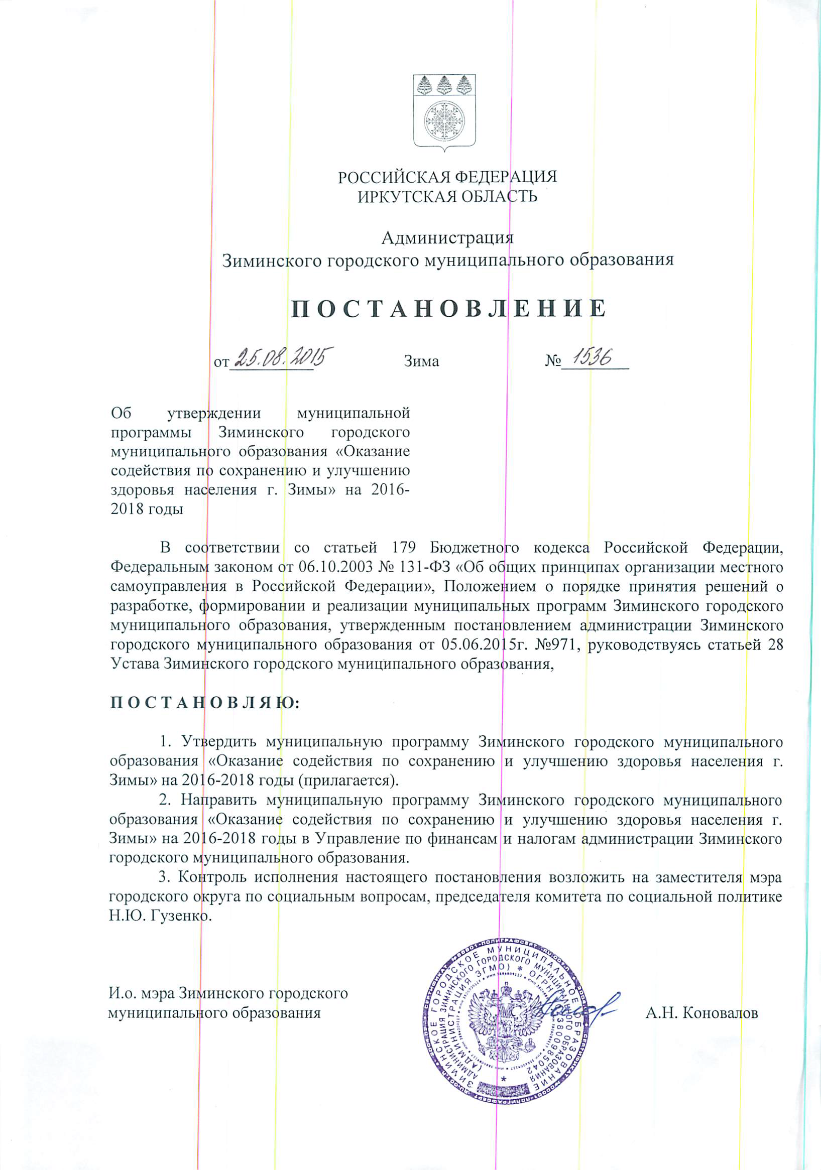Постановление об утверждении Муниципальной программы №1536 от 31.08.2015
