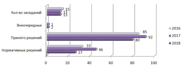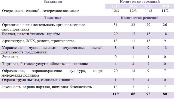 В сентябре текущего года истекает срок полномочий городской Думы города шестого созыва. Дума проработав более четырех лет, накопила достаточный опыт осуществления представительских, нормотворческих полномочий. За данный период в разрезе с 2015 года по 2018 год принято 409 решений, проведено 62 заседания.