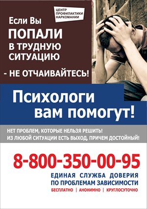 Единая круглосуточная служба телефона доверия по проблемам наркозависимости 8-800-350-00-95