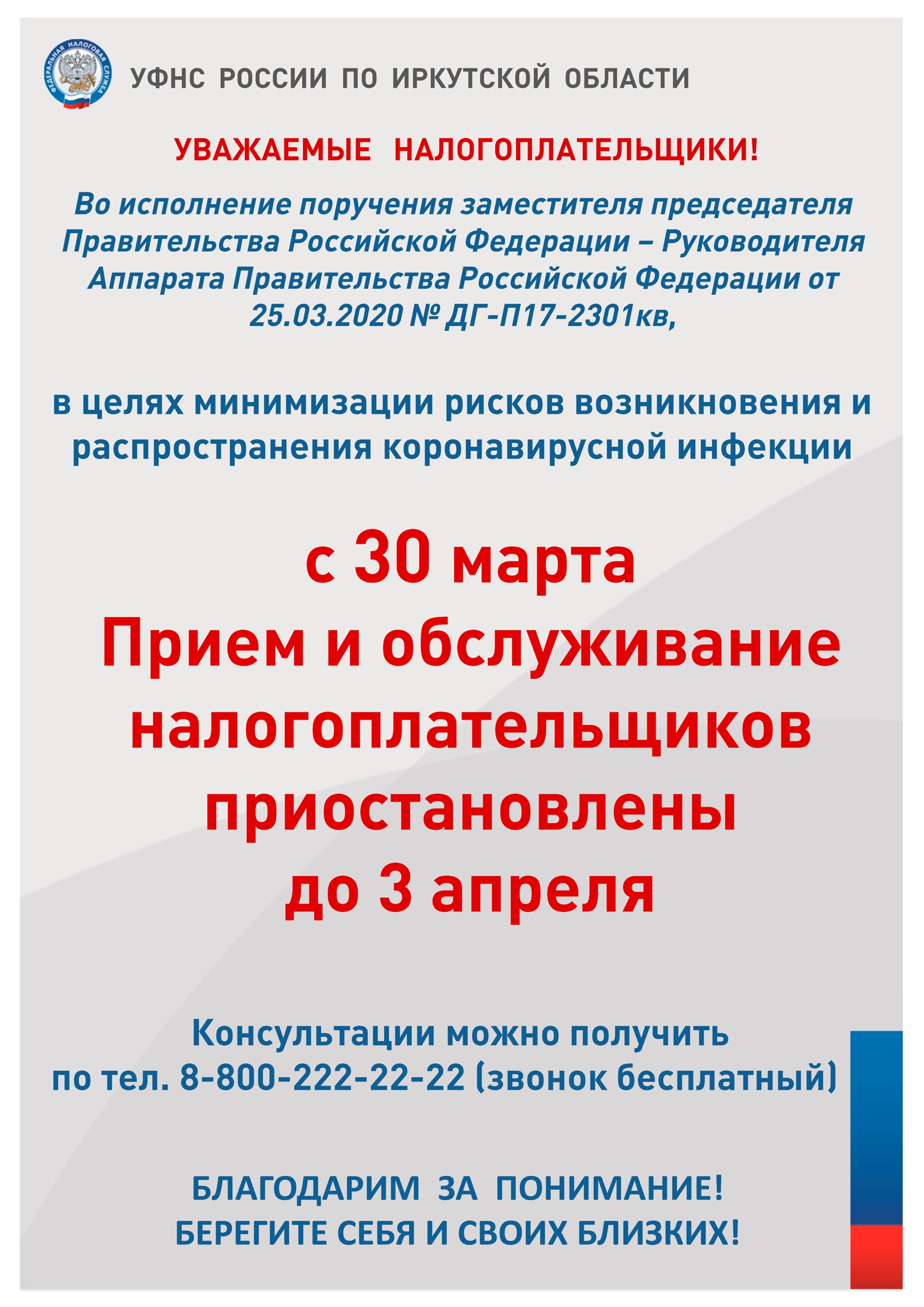 С 30 марта приём и обслуживание налогоплательщиков приостановлены до 3 апреля