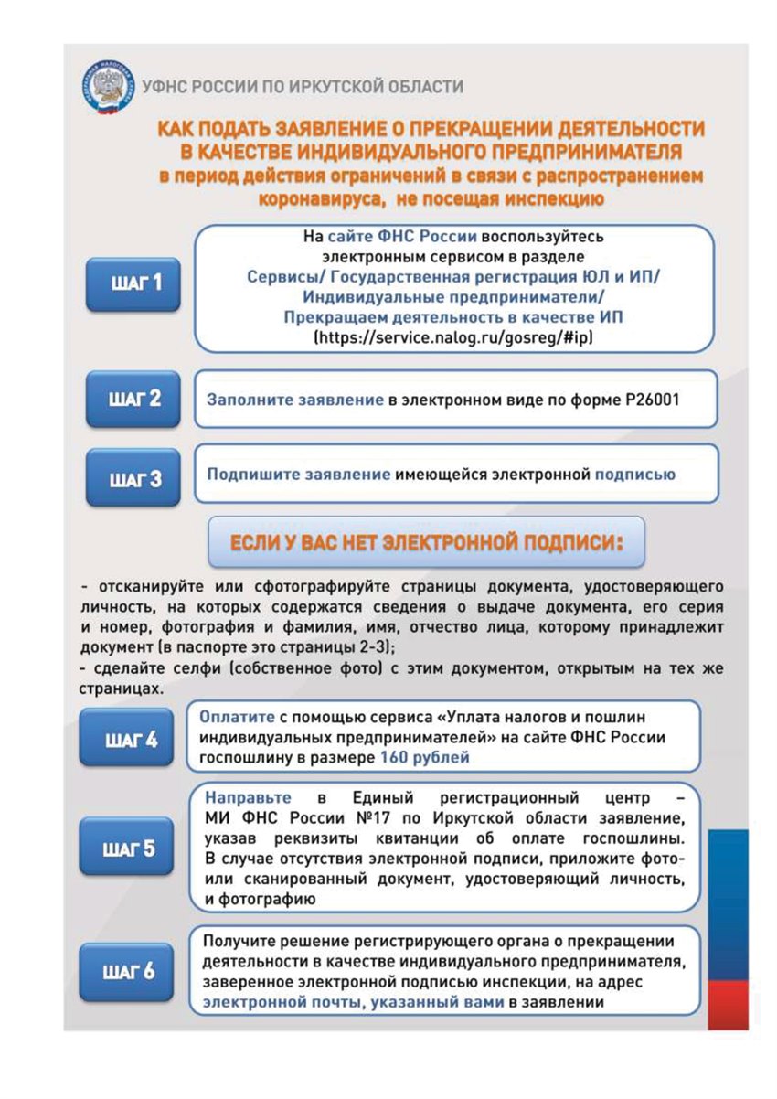 Как подать заявление о прекращении деятельности в качестве индивидуального предпринимателя в период действия ограничений в связи с распространением коронавируса, не посещая инспекцию