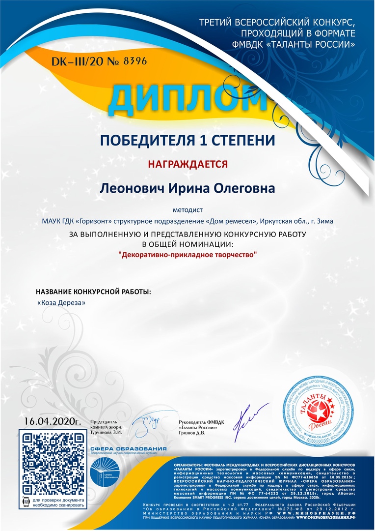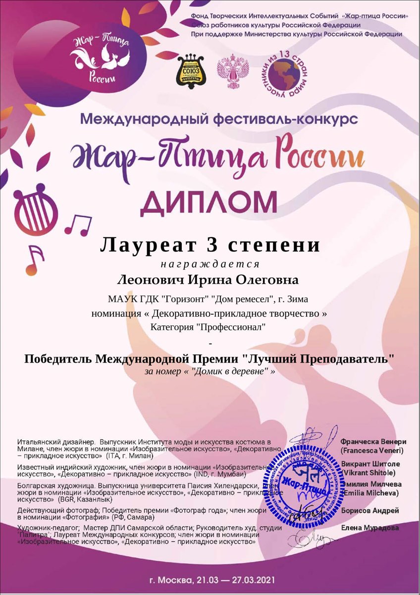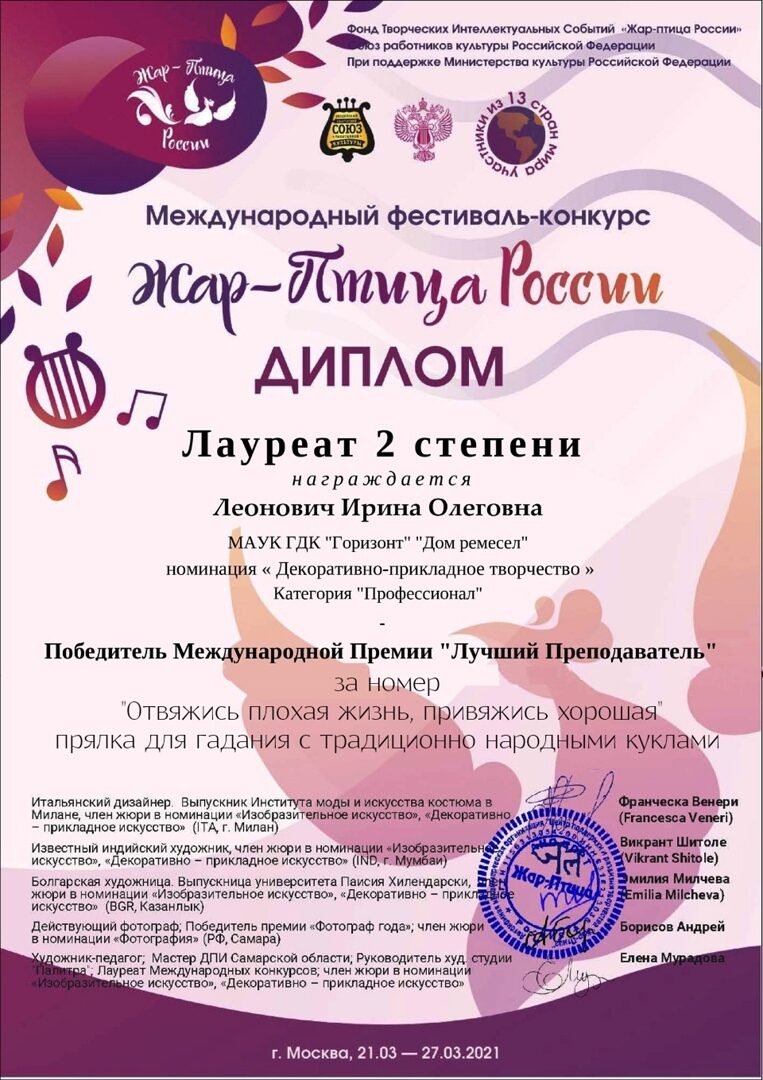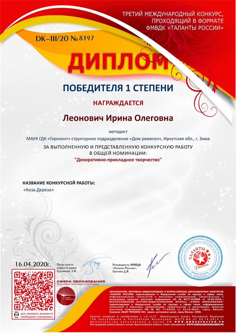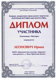 При поддержке Дома ремесел эти мастера принимают участие в областных, городских и региональных выставках становятся их лауреатами и победителями.