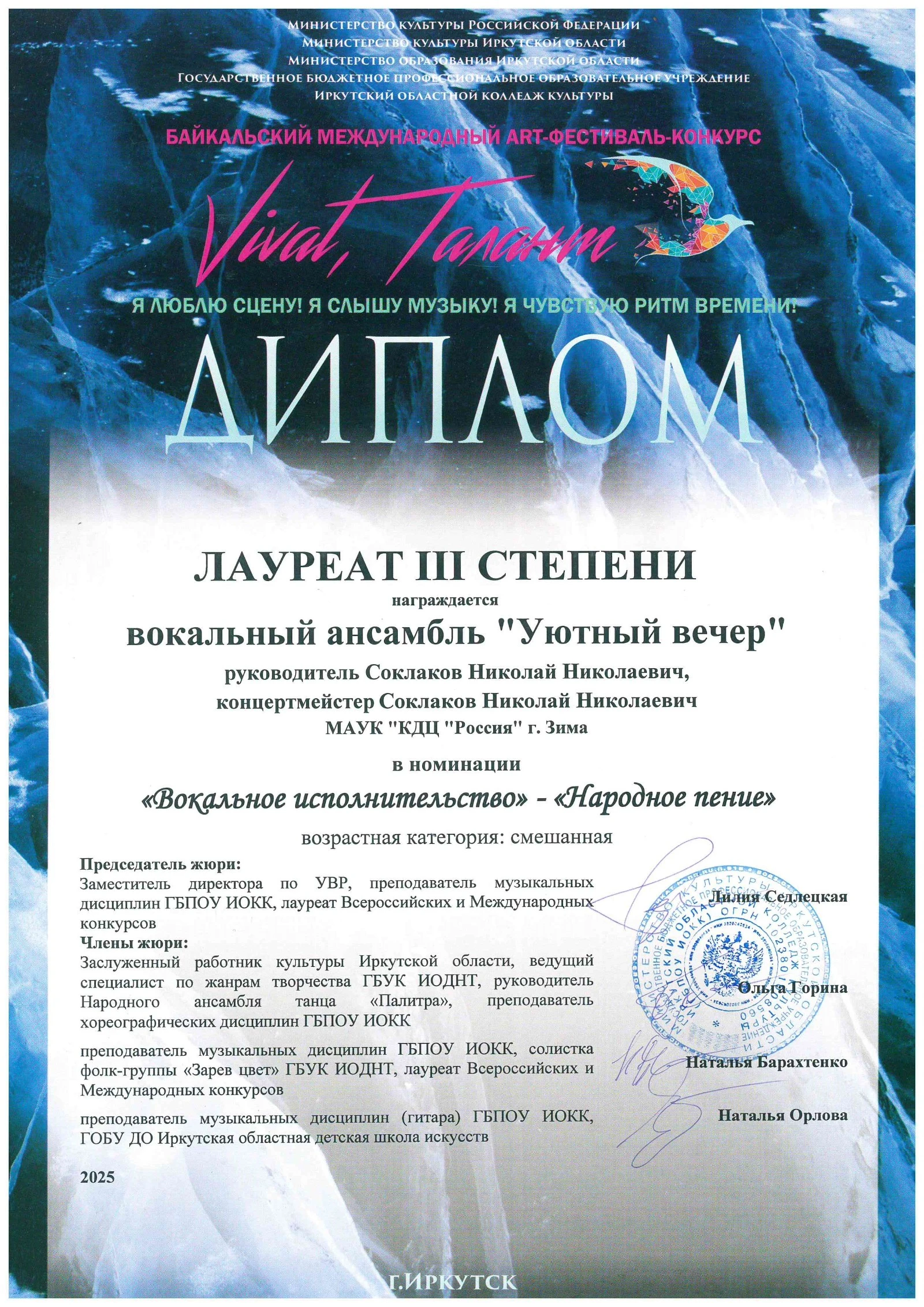 Грамоты МАУК "КДЦ "Россия"
